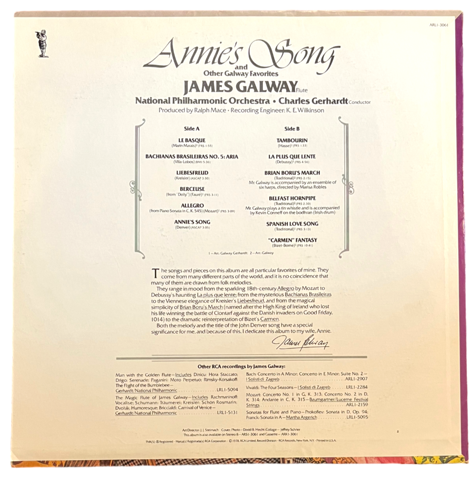 This vinyl LP by James Galway titled "Annie's Song And Other Galway Favorites" is a must-have for any collector of soundtracks and musicals. The 33 RPM record on RCA label comes in a cardboard sleeve and is in excellent (EX) condition, while the sleeve grading is very good plus (VG+). The record size is 12" and the edition is standard. The release year of this classic album is 1978. The LP features the renowned flutist James Galway and his beautiful renditions of classic songs, including "Annie's Song". This black vinyl record is a perfect addition to any music lover's collection. Don't miss the chance to own this gem! FAST shipping from a trusted USA seller! All items ship within 1 business day of payment or sooner. You are purchasing the exact item shown. Please review all photos. All items are stored in a SMOKE FREE and temperature controlled environment. RECORD BUYERS: We do combined shipping at $3 additional each for shellacs and $2 additional for vinyl. 30-Day Money Back Guarantee * with Free Return Shipping! *All returns must be in the original condition as received and in the original packaging. Thank you for visiting Mack's Marketplace! We are a small business reseller and are thrilled to have you here. We don't create, produce, or endorse any items unless stated otherwise. Check out our feedback to see what our customers are saying about us!
