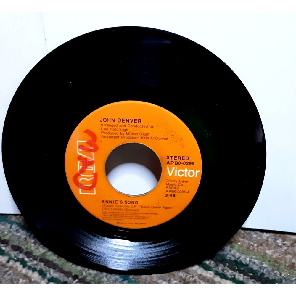 John Denver 45 rpm 7 inch record. RCA Victor APB0-0295 1974 issue. Good to better vintage condition. Writing on one side of the label Side A: Annie's Song Side B: Cool An Green An Shady Shipping in a sturdy mailer. Condition: Pre-Owned Good Good to better vintage condition.