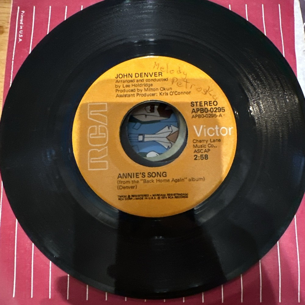 John Denver Annie's Song/Cool An' Green An' Shady 1974 45 RPM Record APB0-0295...