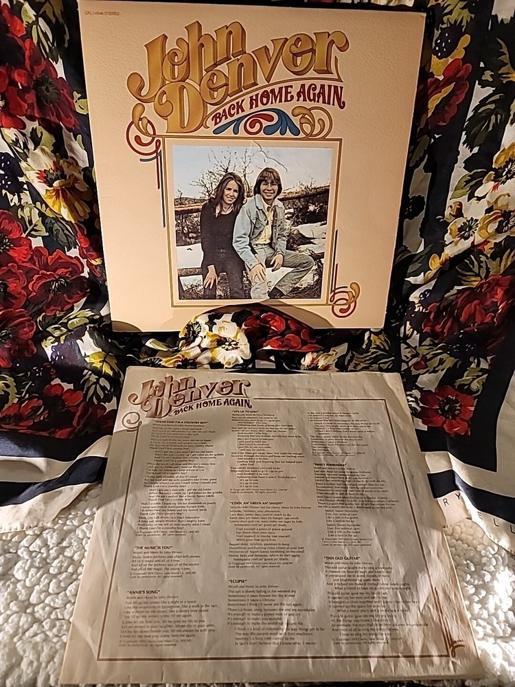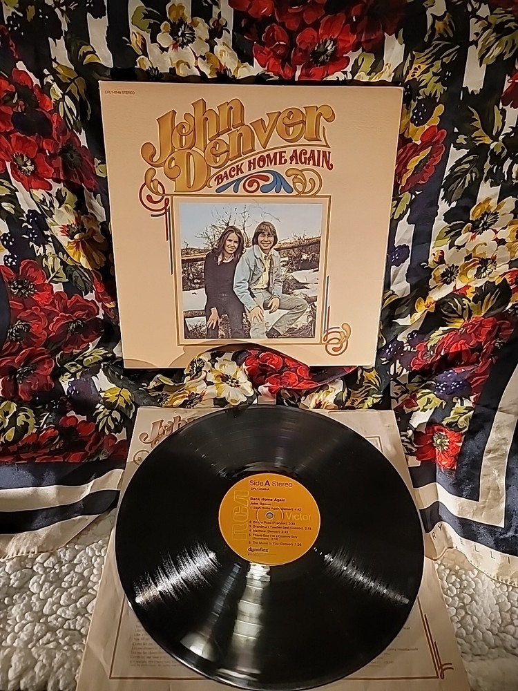 This is a 12" vinyl LP album titled "Back Home Again" by John Denver, released in 1974 by RCA Victor. The record features songs in the rock, acoustic, and country genres, including the popular track "Annie's Song." It comes in a paper sleeve with the original cover and is in very good condition. The album is in the country pop style and was made in the United States.