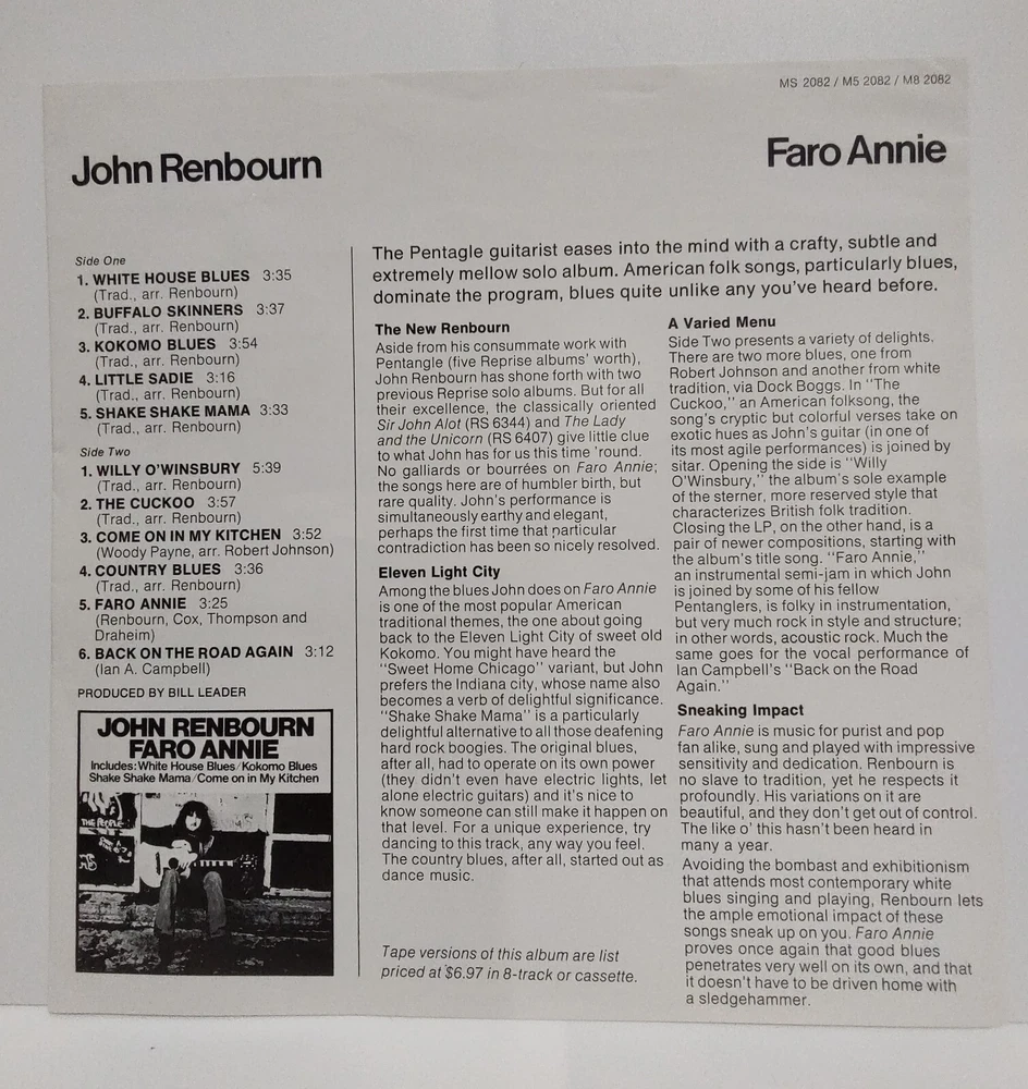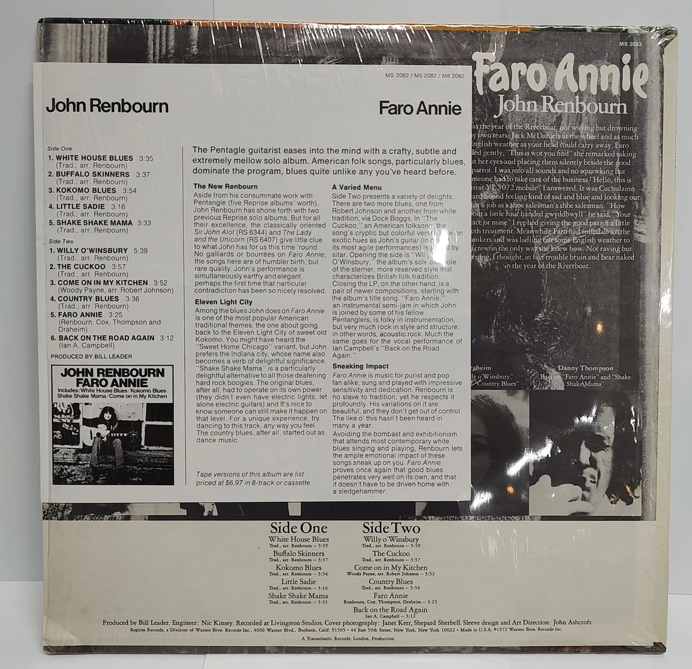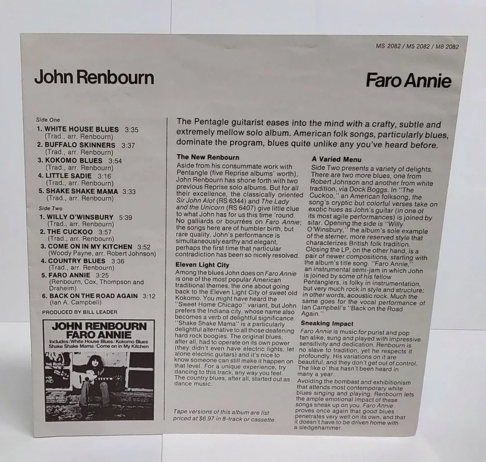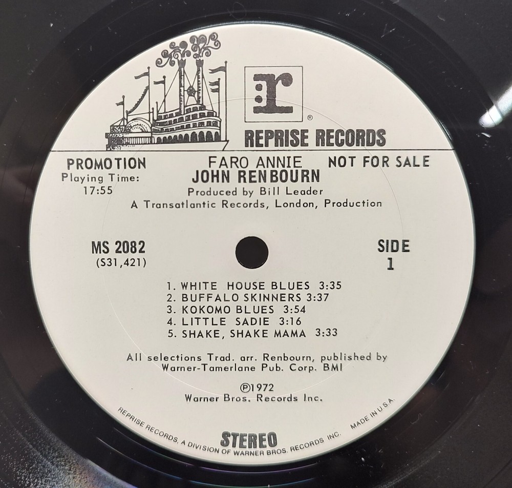 John Renbourn, guitarist for Pentagle, Faro Annie WB MS 2082 U.S. Promo White Label vinyl album. 1972 Rare NM with promo insert and Warner Bros. stock paper inner sleeve! Rare and in fantastic shape! A beautiful copy! Please be sure to check out all the pictures! Please note shipping cost includes high quality secure packaging materials. Shipping on multiple items, as always, can be combined. I try to grade and describe as accurately as possible but due to the subjectivity of the process I include lots of photos so the buyer is comfortable knowing that what they're getting is what is being described. As many of the items I sell are 40 years old or older some light normal storage wear should be expected. Per eBay policy, anything found by the buyer to be not as described should be messaged to me as soon as the items are received and I will address as prescribed and as expeditiously as possible. I am available 24-7 for any questions or additional pictures and you will receive a prompt response. Be sure to check my other listings for other nice items I've amassed in my over 30 years in the movie and music business, many of which are not available anywhere else on eBay! Thank you!