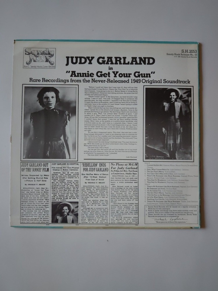This classic LP from Sandy Hook Records features the legendary Judy Garland in the beloved musical Annie Get Your Gun. The vinyl record format allows for a rich and authentic listening experience, perfect for any music lover. Whether you're a fan of Garland or simply appreciate the timeless tunes of this classic musical, this LP is a must-have for your collection.