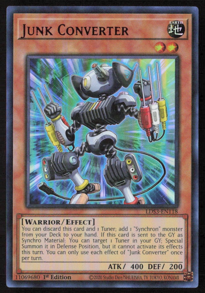 You will receive a Near Mint or Better, Junk Converter (Red) Legendary Duelists: Season 3 #LDS3-EN118 card Please note, we are not a professional graders and the condition of a raw card is highly subjective. Please refer to the high quality scans of the card included in this auction to determine the condition of the card for yourself. Any questions, please just ask! All cards are in EX - NM+ condition, unless stated otherwise. Chrome cards from various brands might have minor light surface scratches, which is typical with these types of cards. Any major, deep scratches will be noted, if present. Coupons and other discounts will not apply to Accepted Offers. We take pride in the condition of all our cards, including commons. Our promise to you is, we would not sell a card in a condition we would not want to receive ourselves! We are also very proud of our shipping standards, and all cards, including commons will come in a penny sleeve and very well protected! Please check out our other Sports Cards listings, as the more you buy, the buy you save! Be sure to save us as a Seller, as we are always growing, and listing cards daily! Listed with Card Dealer Pro Use the code " MSC " when signing up to Card Dealer Pro to receive 500 FREE Scans!