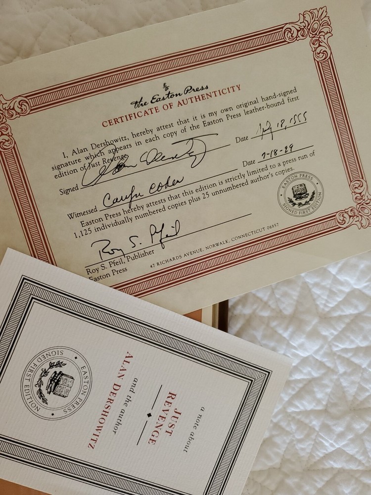 In this gripping morality tale of revenge from a bestselling author and world-renowned lawyer, Max Menuchen comes face-to-face with the man who slaughtered his family and contemplates murder. By the time an attorney comes to his defense, Max has already carried out an astounding act of revenge. So begins America's great Holocaust trial. Leather bound, signed first edition, like new.