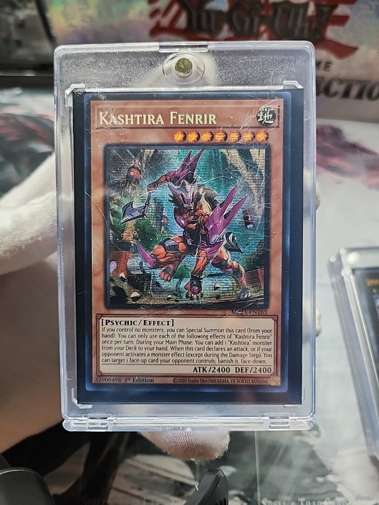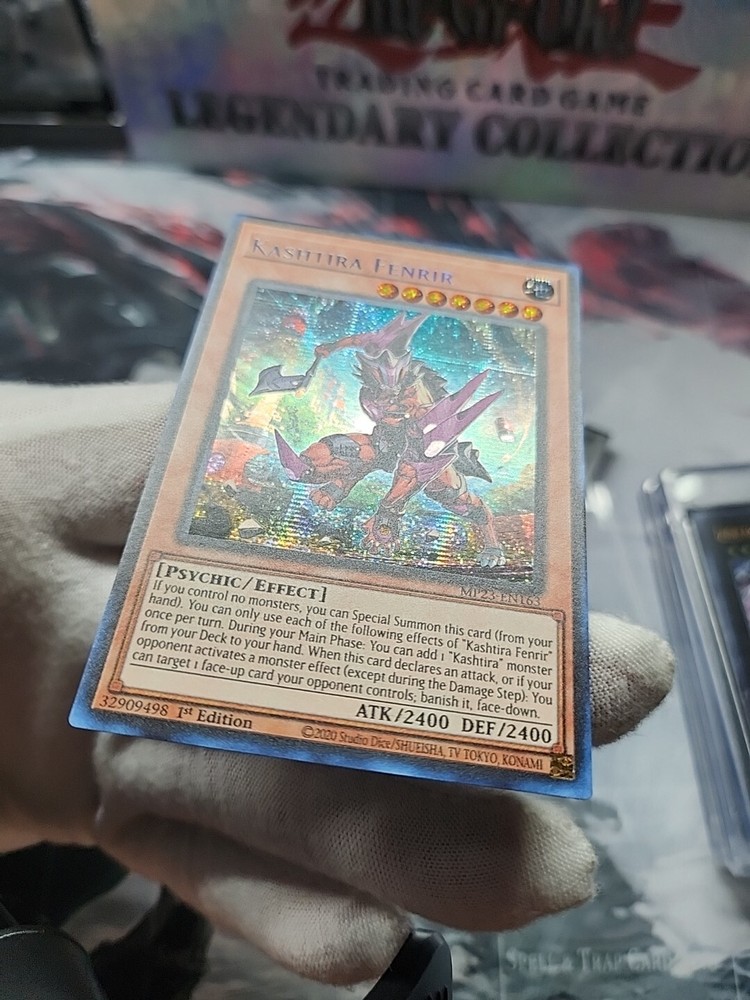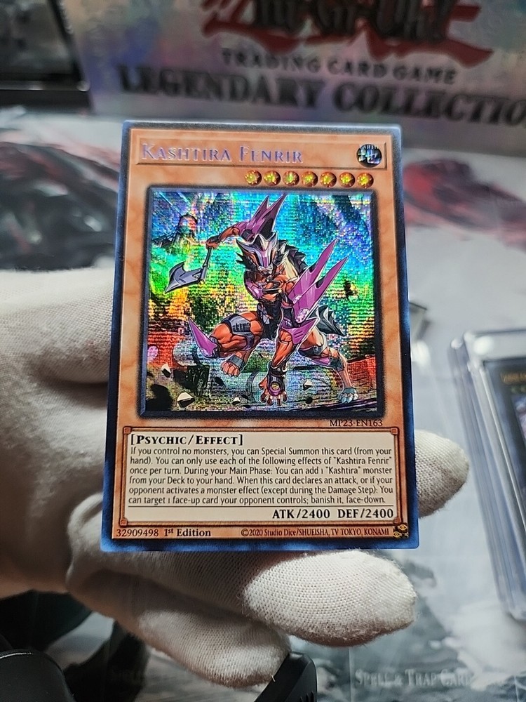 This rare and highly sought-after Kashtira Fenrir card is a must-have for any serious Yu-Gi-Oh! TCG collector. With its stunning Prismatic Secret Rare rarity and 1st Edition status, this card is sure to be a showpiece in any collection. The card features the powerful Psychic creature type, with 2400 Defense/Toughness and 2400 Attack/Power. The card is in English language and manufactured by Konami, with the card number MP23-EN163. It is an Effect card type, and the set is the 25th Anniversary Tin: Dueling Heroes Mega Pack. This card is perfect for fans of the game and collectors alike, and is sure to be a valuable addition to any collection.