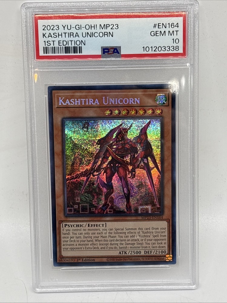 | Card Text | If you control no monsters, you can Special Summon this card (from your hand). You can only use each of the following effects of "Kashtira Unicorn" once per turn. During your Main Phase: You can add 1 "Kashtira" Spell from your Deck to your hand. When this card declares an attack, or if your opponent activates a monster effect (except during the Damage Step): You can look at your opponent's Extra Deck, and if you do, banish 1 monster from it, face-down. |