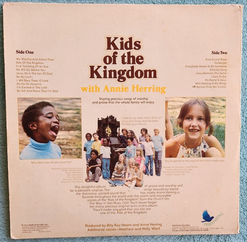 Kids Of The Kingdom With Annie Herring Sharing Songs Of Worship For All Ages LP 1976 Vinyl Album This vintage classic would make a wonderful addition to your collection. Thanks for looking....