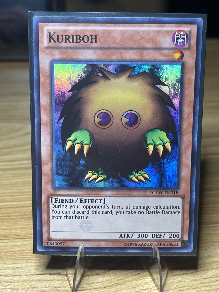 The product is a Yu-Gi-Oh! TCG card named Kuriboh, with the card number LCYW-EN018. It belongs to the Legendary Collection 3: Yugi's World set and has a super rare rarity. The card is an effect type Fiend monster with 200 defense/toughness and 300 attack/power. It is an unlimited edition card manufactured by Konami in English language.