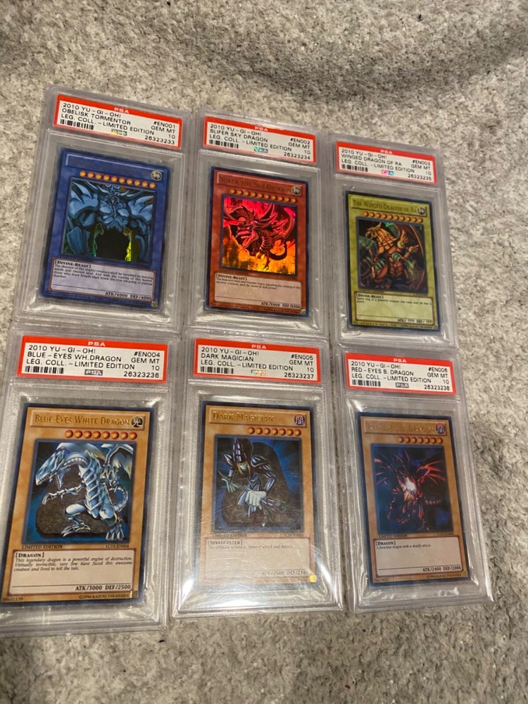 This set is absolutely legendary! The 2010 Yugioh Egyptian God cards in PSA 10 Gem Mint condition are insanely rare, especially with sequential numbering and the uneven cut making them one-of-a-kind. I held onto them for years because they’re so special, but now it’s time for someone else to enjoy this incredible piece of Yugioh history. Perfect for serious collectors—don’t miss out!