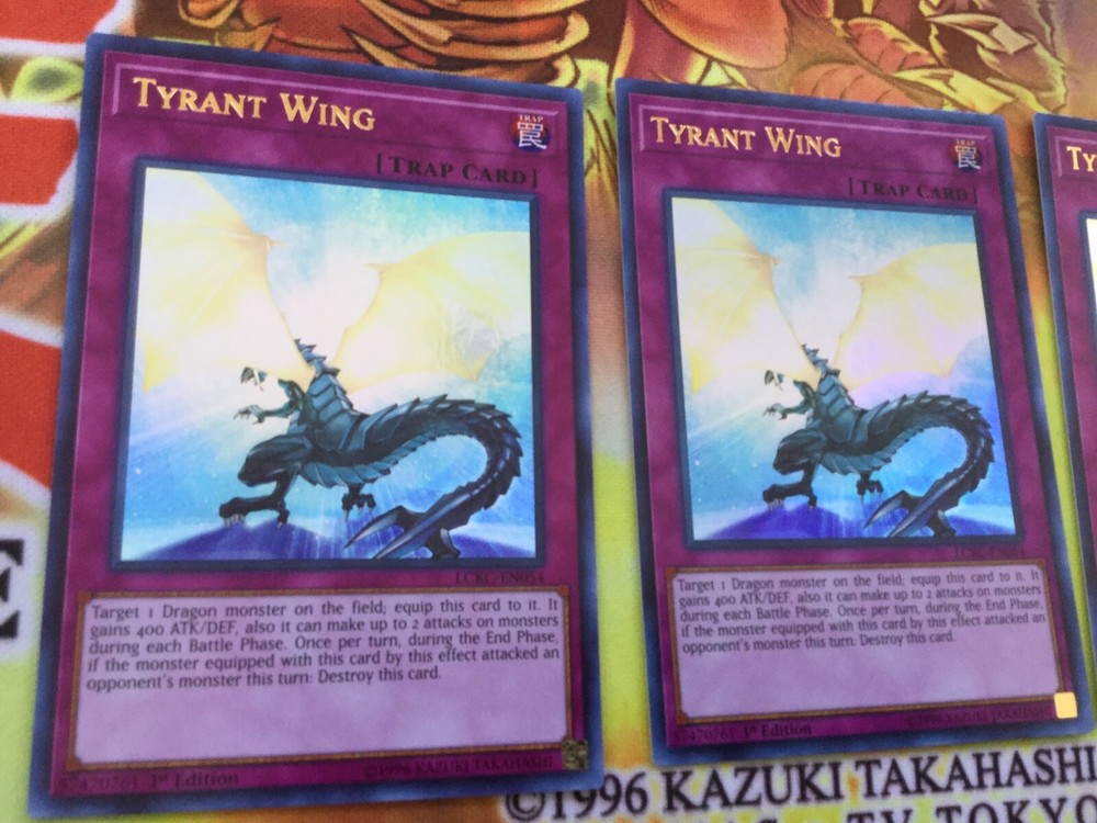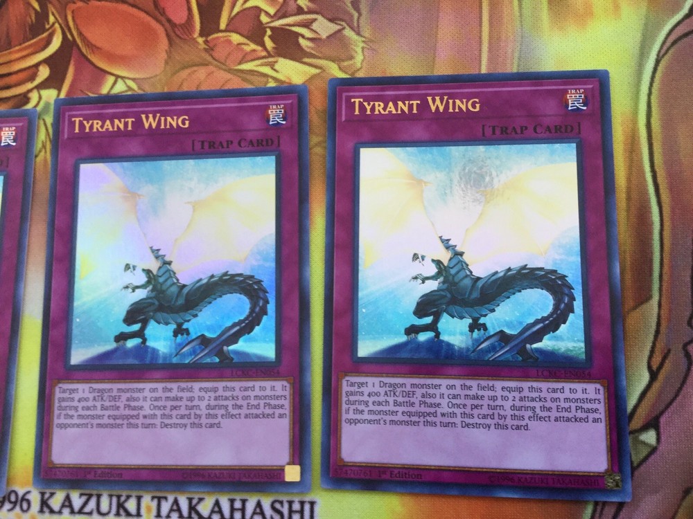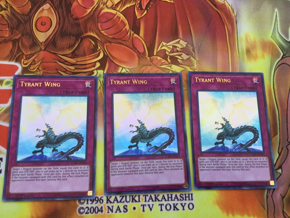 Listing Template 2018 Home About Us Shipping Returns View Feedback Contact Us YUGIOH 3 X TYRANT WING - LCKC-EN054 LEGENDARY COLLECTION KAIBA ULTRA These cards are in Near Mint condition. Please check the photos for more questions on condition or please just ask! Thanks for viewing! Please check out my eBay store for more cards and to use our promotional offers! We offer COMBINED INTERNATIONAL SHIPPING! Please contact us and ask us to combine your shipment! We provide UK free postage! All of our cards are sleeved, with a taped Toploader to ensure maximum protection, and the best overall condition of your cards! Do you want to earn extra cash for your old cards? Clear out your binder and send us photos of what you have! We will happily send you an offer and sort out postage to make it hassle free. There's no harm in trying! Message us now! You will receive these cards in very good condition as shown! Thanks for looking! Free delivery. Honest Sellers. We care about your cards and your satisfaction. About Us Based in United Kingdom, twintraders has been an eBay member since 02 Mar, 2006 Contact Us The best way to contact us is through the eBay messaging system. You can send us a message by using the "Questions and answers" section towards the bottom of the page. Feedback We will always help you to have a 100% positive happy buying experience. Contact us if you are unhappy about any aspect of your purchase from us. We only want five star feedback from you so buy with confidence. View Our Categories Check out our discounts/deals for better value!