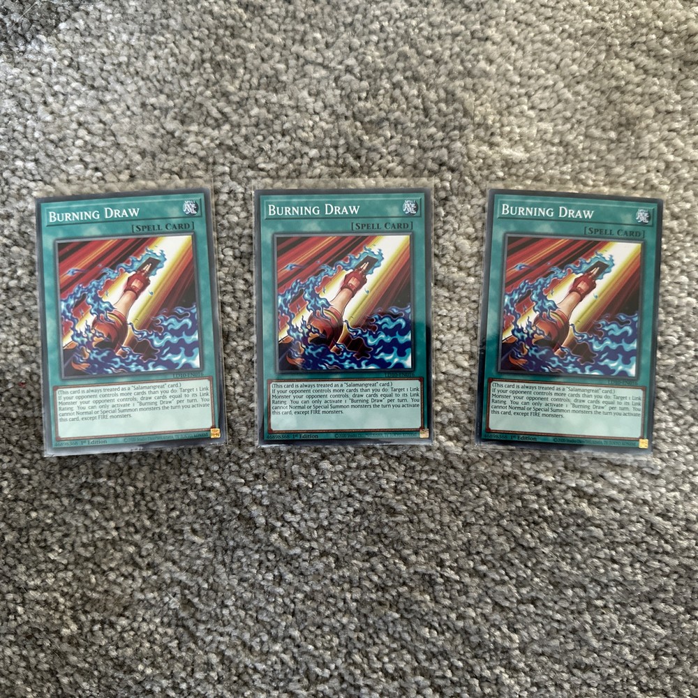 Elevate your Yu-Gi-Oh! TCG gameplay with the LD10-EN016 Burning Draw Common card from the Legendary Duels: Soul Burning Volcano set. This English-language card is a must-have for any duelist looking to add a touch of strategy to their deck. Manufactured by Konami, it's a genuine piece of the 1st Edition collection that any enthusiast would be proud to own. Included in this listing are three Burning Draw cards, each ensuring you have the redundancy to consistently execute your game plan. With the card's rarity classified as Common, it's an accessible addition for players starting out or seasoned collectors seeking to enhance their assortment with a hint of nostalgia and strategic depth.