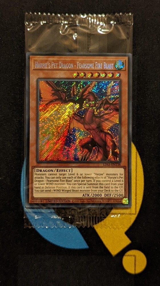 This Harpie's Pet Dragon is an absolute gem for collectors! The Secret Rare artwork pops with fiery detail, and even though it's sealed, the minor corner wear doesn't take away from its stunning presence. European print adds a cool touch, and the fact it comes straight from storage means it's as fresh as possible. Love that orders over £25 get upgraded shipping—great incentive to grab more goodies from this seller! A must-have for Harpie fans or anyone chasing rare YuGiOh pulls.