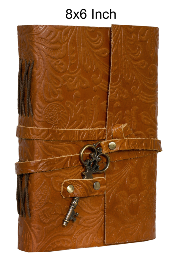 • Product details Brand:- Radhe Krshna Art Colour :- Brown Cover Material :- Leather Style :- Antique - Textured Ruling Type : Unruled • GENUINE VINTAGE LEATHER DIARY : This antique and old Journal comes with Beautiful Key on the Leather Wrap Around. This Leather Notebook makes a Unique & Ideal Gift for Women and Teen Girls. Use this Blank Journal as a Daily Diary, Journal, Travel journal, Gratitude Journal, Wedding Guest Book Alternative etc. • DIARY WITH KEY CLOSURE FOR MEN & WOMEN: A perfect Leather Journal for Men & Women by RadheKrshna Art. As Journals are made with genuine leather so each vary in look and shade producing a unique item. • DIARY WITH IDEAL SIZE: - This Journal comes with 1 Size (8 inches X 6 inches), with 1.5 inches Thickness. Easy for handwriting, drawing and sketching and compact for carrying in your bag. • Use any kind of pen for sketch, doodle on your blank Journal with a Calligraphy Pen, Fountain Pen, Brush Pen and many more. • RADHE KRSHNA ART'S DIARY: - Our Vintage Leather Journal made from 100% Genuine Leather and comes with the Trust and promise of Purity of craftsmanship with each Writing Journal. You will fall in love with the journal. Affordable And Luxury Product. * Some More Basic Details of Leather Bound Journal:- • LEATHER: Genuine leather • Hand - Stitched Diaries • CAUTION : Do not use hard eraser on paper • Handcrafted Diary - Made In India Genuine Leather: We use a thicker, higher grade leather combined with incredible craftsmanship to create a journal that is soft and supple in the hand with that fabulous, intense leather scent. - Handmade Paper • Artists Sketchbook, Scrapbook, Poetry book • Meal Planner and Grocery Lists, Bible Journal • Meeting Reminders, Faith Journal, Travel Diary Thoughts Book Give Wings to your Creativity Handmade paper is suitable to preserve your creativity for centuries. Record all precious moments of your life and pass it on to Generations. Our Product will keep your memories safe for centuries. Secure hand binding so no paper comes out loose from your vintage notebook . An ideal gift for artist writers, travelers, graduates, friends, or anyone who has a love for writing and note-taking. A Journal that is worthy of your thoughts and ideas, that will make you feel special every time someone opens it and that will last a lifetime.