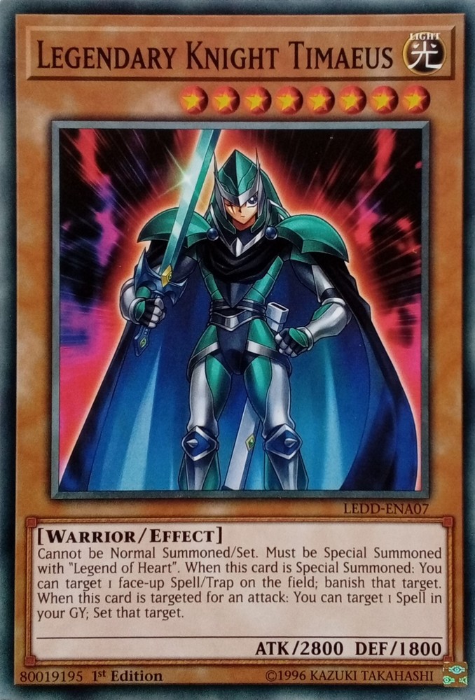 LEDD-ENA07 LEGENDARY KNIGHT TIMAEUS COMMON 1ST EDITION ALL YU-GI-OH CARDS I SELL ARE KONAMI TOURNAMENT LEGAL. CARDS ARE ALL NEAR MINT TO LIGHTLY PLAYED CONDITION POSTAGE IS FREE SO YOU CAN BUY AS MANY CARDS AS YOU WANT FROM US AND NOT PAY A PENNY POSTAGE. IF YOU HAVE ANY QUESTIONS PLEASE FEEL FREE TO CONTACT ME. Track Page Views Wi4.9 Auctiva's FREE Counter