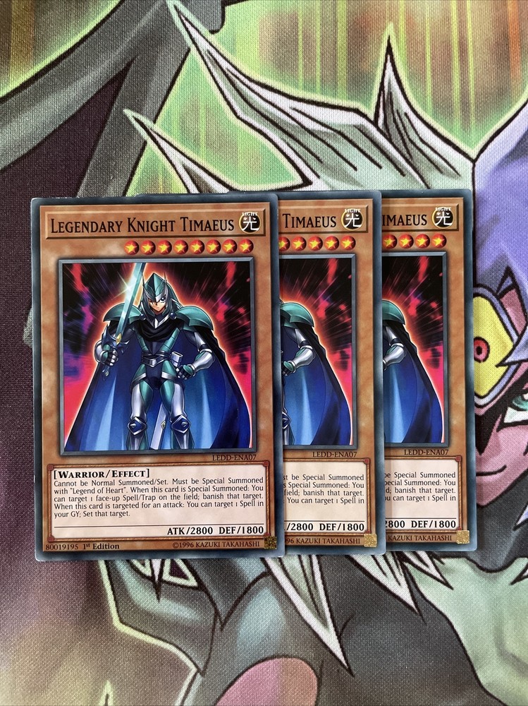 This playset is mixed edition (you will receive a mixture of unlimited and 1st edition cards)LEDD-ENA07 Legendary Knight Timaeus Yugioh x3 Playset. Condition is Used. Dispatched with Royal Mail 2nd Class.
