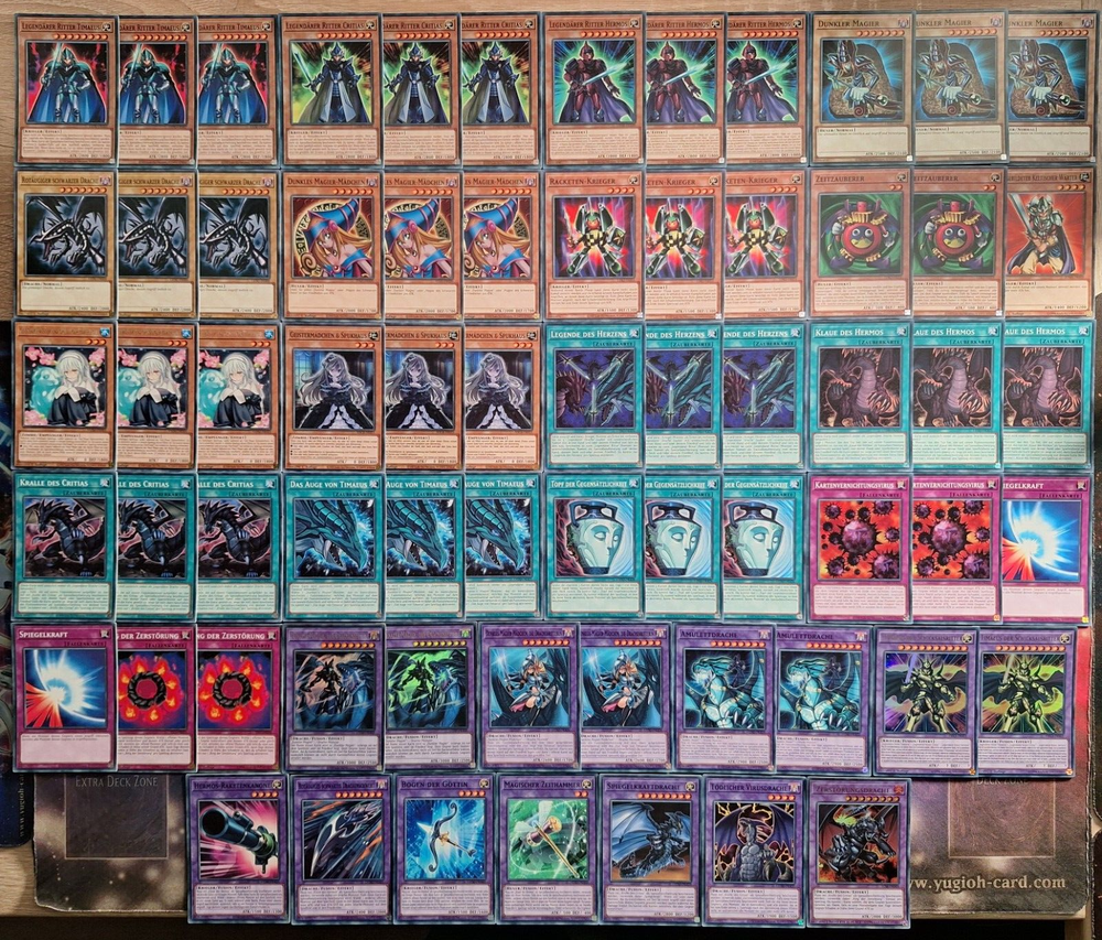Hallo Ebayer, willkommen bei meinem Ebay Angebot. Folgendes Deckthema kannst du in diesem Angebot erwerben: LEGENDÄRER RITTER/LEGENDARY KNIGHT ( = insgesamt 66 Karten ) Monster ( 30 ): 3x Legendärer Ritter Timaeus 3x Legendärer Ritter Critias 3x Legendärer Ritter Hermos 3x Dunkler Magier 3x Rotäugiger Schwarzer Metalldrache 3x Dunkles Magier-Mädchen 3x Racketen-Krieger 2x Zeitzauberer 1x Ausgebildeter Keltischer Wärter 3x Geisterschwester und gruseliger Hartriegel 3x Rare 3x Geistermädchen & Spukhaus Zauber ( 15 ): 3x Legende des Herzens 3x Klaue des Hermos 3x Kralle des Critias 3x Das Auge von Timaeus 3x Topf der Gegensätzlichkeit Fallen ( 6 ): 2x Kartenvernichtungsvirus 2x Spiegelkraft 2x Ring der Zerstörung Extradeck ( 15 ): 2x Dunkler Magier, der Drachenritter 2x Ultra Rare 2x Dunkles Magier-Mädchen, die Drachenritterin 2x Amulettdrache 2x Timaeus der Schicksalsritter 2x Ultra Rare 1x Hermos-Raketenkanone 1x Rotäuger Schwarzes Drachenschwert 1x Bogen der Göttin 1x Magischer Zeithammer 1x Spiegelkraftdrache 1x Tödlicher Virusdrache 1x Zerstörungsdrache Ultra Rare Das Deck besteht komplett aus deutschen Karten Alle Karten sind 100% ORIGINAL Konami. Alle Karten sind im Zustand* Mint,Near Mint und Excellent ( maximal vielleicht 3-4 Karten ) Alle Karten werden knicksicher verpackt und ich verschicke Werktags innerhalb von 24 Stunden. Versandkosten: - Für dieses Angebot gilt kostenloser Versand innerhalb Deutschlands - Auf Wunsch gibt es einen versicherten DHL-Paket Versand für 2€ Mehrzahlung. For international Buyers only: - For this offer: International shipping is ALWAYS with insurance and tracking No risk for me! No risk for the Buyer! * Legende der Kartenzustände: Mint = zumeist direkt aus dem Booster ( makelos ) Near Mint = Minimale Abnutzungsspuren ( z.B. kleine Kratzer,kleine weiße Punkte oder kleine Schmutzflecken; meist kaum sichtbar ) Excellent = Kleine Abnutzungsspuren ( z.B. etwas weiße Ränder, leicht abgenutzte Ecken, kleine Schmutzflecken ) Good = Schon deutlich sichtbare Abnutzungsspuren ( z.B. stark angeschlagene Ecken, komplett weiße Ränder, verschmutzt aber ohne Knicke und turnierlegal ) Played = Ziemlich starke Abnutzungen mit Knick ( aber noch turnierlegal ) Poor = Extreme Abnutzungen mit einem oder mehreren Knicken ( nicht mehr turnierlegal ) !!! Das Bild ist ein Lagerbestandsbild von einem der hier angebotenen Sets !!! ( Ich muss das leider so schreiben,da ich dieses Set ja mehrfach anbiete. Das Foto ist somit aber ein Originalfoto von einem Set,was ich zufällig aus der Menge ausgewählt habe )
