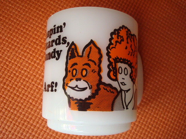 LITTLE ORPHAN ANNIE MILKGLASS CUP MUG. 1974 Excellent condition.