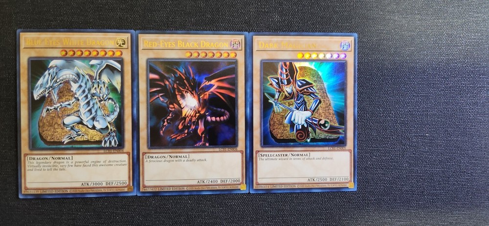 LOT Blue Eyes, Red Eyes, Dark Magician Legendary Collection 25th anniversary reprint. All cards are Near Mint and pack fresh