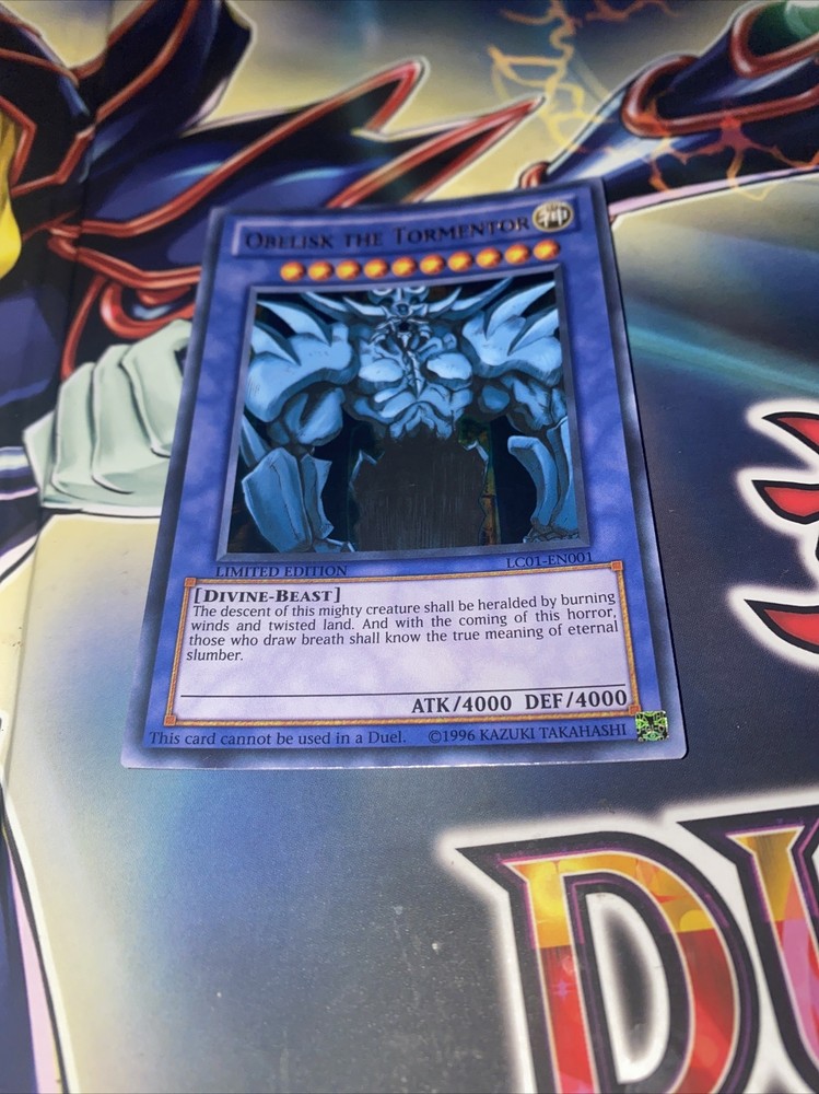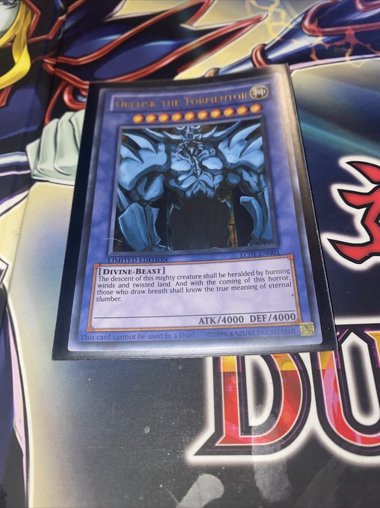 All cards in my store are well taken care of. They will be shipped in a top loader with added protection. This card is in “lightly played” condition due to surface scratches. I would consider it “near mint” but It has very minor wear. This variant cannot be used in a duel, but is still genuine. This Yu-Gi-Oh! TCG card is a must-have for any collector. With its stunning holo finish, the Obelisk The Tormentor card from the Legendary Collection set is a true gem. Its divine attribute and divine-beast monster type make it a unique addition to any deck. Featuring the iconic Ultra Rare rarity and card number LC01-EN001, this Konami-manufactured card is in LP condition. Add it to your collection today and unleash its power on your opponents.