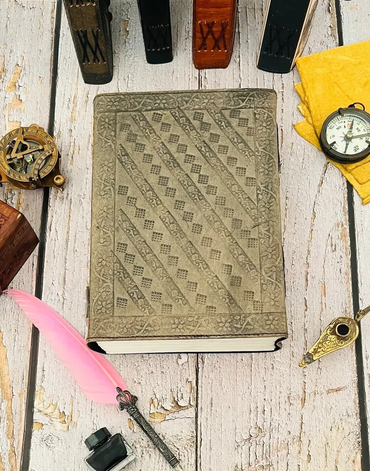 Style - Tree of life leather journal Color - Antique/black/Brown Page - 120 Sheets ( 240 pages counting both Side ) Lock - Brass C-lock Size - 10 x 13 inch / 7 x 10 inch This stunning leather journal is adaptable to use as a memory journal, sketch book, manuscript book etc. This embossing journal is adorned with detailed leather. It is perfect for classic calligraphy and scripting - a true conversation piece. Indulge yourself to write poetry, spill your heart and soul out onto the handmade fiber pages or use as Guest book / Instagram Photo book. Guest book: The blank handmade paper is very unique and perfect for guest/wedding book. Instagram Photo Book: It can also be used to show off your favorite Instagram images in this handmade leather book by using acid-free scrape booking adhesive or double-sided tape. Overall Length: 13 by 10 inches Pages: 600pages (counting both sides) Paper Type: Handmade paper Cover: Genuine Cow Hide Leather with Leather Metal Closer Design: Detailed Tree of Life Embossed and leather Whether you’re a mom balancing a family with tons of appointments, a business professional who needs to remember details meetings, or you just want to keep your notes and thoughts collected, this Leather Journal comes with all the style, comfort, and versatility you need to be at your best The leather is produced using traditional methods which allows it to retain its character. This means that each journal is unique and comes with its own set of beautiful creases, bumps and marks that develop with age into something truly special. The leather is protected with natural oils to give it a lovely rich finish .