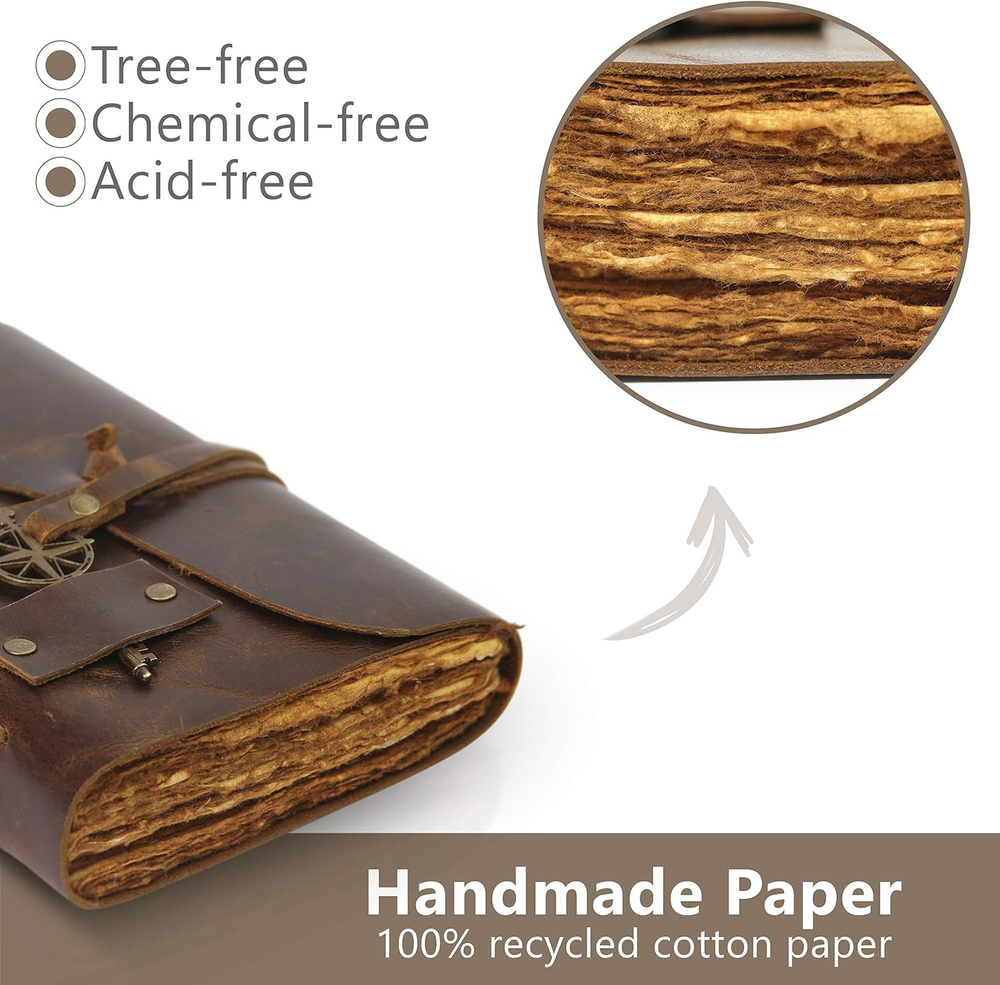 Store New Arrivals Add to Favorite View Feedback Contact Large Vintage Leather Journal - 8.5X11" - Antique Handmade Leather Bound Journal with Old Fashioned Deckle Edge Paper - Perfect for Writing a Grimoire Sketching as a Diary Description Item model number TVJA4 Style Unlined Vintage Deckle Product Dimensions 0.04 x 0.04 x 0.04 inches Number of Items 1 Color Brown Pages 200 Pages Cover Material Leather Material Type leather Sheet Size 8.5 x 11 Manufacturer Part Number TVJA4 Item Weight 3.45 pounds Theme Book Ruling Dotted Ruling Type Dotted Special Feature 248 cm Size A4 (22x28 cm) [Beautifully Handcrafted] High quality, thick, full grain 100% leather notebook that looks, smells and feels beautiful. Vegetable tanned buffalo leather will age with character - A lifelong keepsake for your thoughts and expressions [Deckle Edge Vintage Paper] 200 pages of off-white, 130GSM recycled cotton that is acid-free, chemical-free and tree-free. This gorgeous, thick, blank, unlined paper, prevents bleed-through and feels amazing. Environmentally sensitive and fountain pen friendly [Large Size] Escape with your Wanderings leather bound journal and create your own adventure. Makes a great leather writing notebook, sketch notebook, or watercolor pad. Write, dream, draw, or paint - create your own story. Large 8.5x11"/ 21x30 cm and 200 sheets / 100 pages (non-refillable) is the perfect large leather sketch diary and makes a great keepsake [Stylishly Ancient] Old fashioned cotton paper combined with the beauty of a distressed leather , hand stitched by Artisans, creates a keepsake you will cherish forever. Makes a great gift for the men, women, and wiccans in your life! Also available on Amazon in 6x9 size (B08P3MY1QW) Product Description Handcrafted by Artisans BEAUTIFULLY HANDCRAFTED High-quality full-grain 100% leather that looks, smells, and feels beautiful. Naturally tanned leather will age with character - or simply rub away your markings if you choose. A lifelong companion on your journeys. Four sizes to choose from. Three Styles of Deckle Edge Three styles of DECKLE EDGE Vintage Paper available. Choose from: Vintage Old Fashioned Aged Unlined Vintage Old Fashioned Aged Lined Ivory / White Perfect for creating your masterpiece or logging those pieces of everyday wisdom Handmade Paper Handmade Vintage Paper - 200 sheets of thick 120gsm recycled cotton that is: acid-free chemical-free tree-free This gorgeous, thick, BLANK paper prevents bleed-through and feels amazing. ENVIRONMENTALLY SENSITIVE and fountain pen friendly. Wanderings Quality OUR PROMISE : If for any reason you don’t love our Wanderings antique leather journals please let us know and we’ll make it right - no questions asked. Create Your Own Adventure TIMELESS - Escape with Wanderings and create your own creative masterpiece. Write, sketch, doodle, or draw, the options have no limits. Create Your Own Adventure TIMELESS - Escape with Wanderings and create your own masterpiece. Write, sketch, doodle or draw, the options have no limits. Create Your Own Adventure TIMELESS - Escape with Wanderings and create your own masterpiece. Write, sketch, doodle or draw, the options have no limits. Create Your Own Adventure TIMELESS - Escape with Wanderings and create your own masterpiece. Write, sketch, doodle or draw, the options have no limits. Dream Draw Create Write STYLISHLY ANCIENT - Antique cotton paper combined with the beauty of distressed leather, hand-stitched by Artisans, creates a keepsake you will cherish forever. Makes a great gift for the men, women, and wiccans in your life! Genuine Leather Wanderings Quality Handmade Deckle Edge Paper Timeless Design ABOUT US We offer the best prices around on high quality products. Our E-store includes media such as books, movies, music and games while offering electronics, toys, sporting apparel, clothing, tools, general home, garden items and more. SHIPPING We are always working hard to ensure your package arrives as soon as possible. Please understand that some factors like weather, high postal traffic, and the performance of shipping companies are outside of our control. We offer free shipping to the lower 48 states and ship within 2 business days of payment, usually sooner. We do not accept P.O. Boxes. Please provide a physical address. For shipping outside of the continental USA, we only use eBay's Global Shipping Program.The item is shipped to KY and then sent to the rest of the world. International customers are responsible for all duties and taxes. Continue to check out in order to calculate costs for shipping the item to your country. Messages regarding eBay's Global Shipping Program MUST be directed at eBay EXCLUSIVELY. RETURNS We offer a 30-Day Return Policy on items which you are not completely satisfied with. You have the option for a full-refund or an exchange of the item. No returns are available on items shipped outside of the USA. PAYMENT We accept PayPal. CONTACT US This page content is yet to come Please ad us to your favorite seller and visit again later Thank You CUSTOMER SATISFACTION We try our very best to make sure every customer is completely satisfied. If there's a problem, message us! We're happy to help.