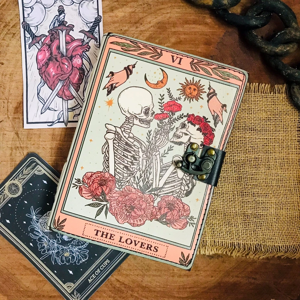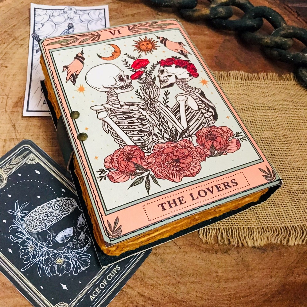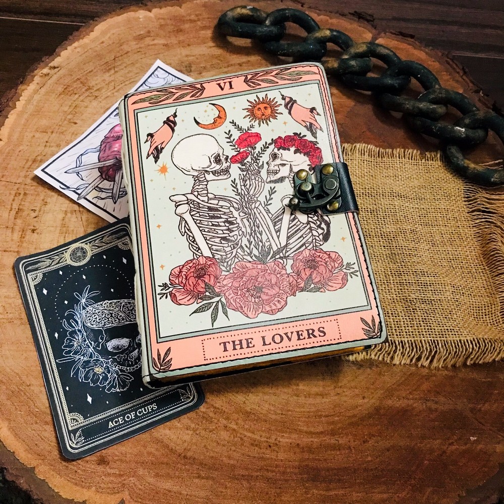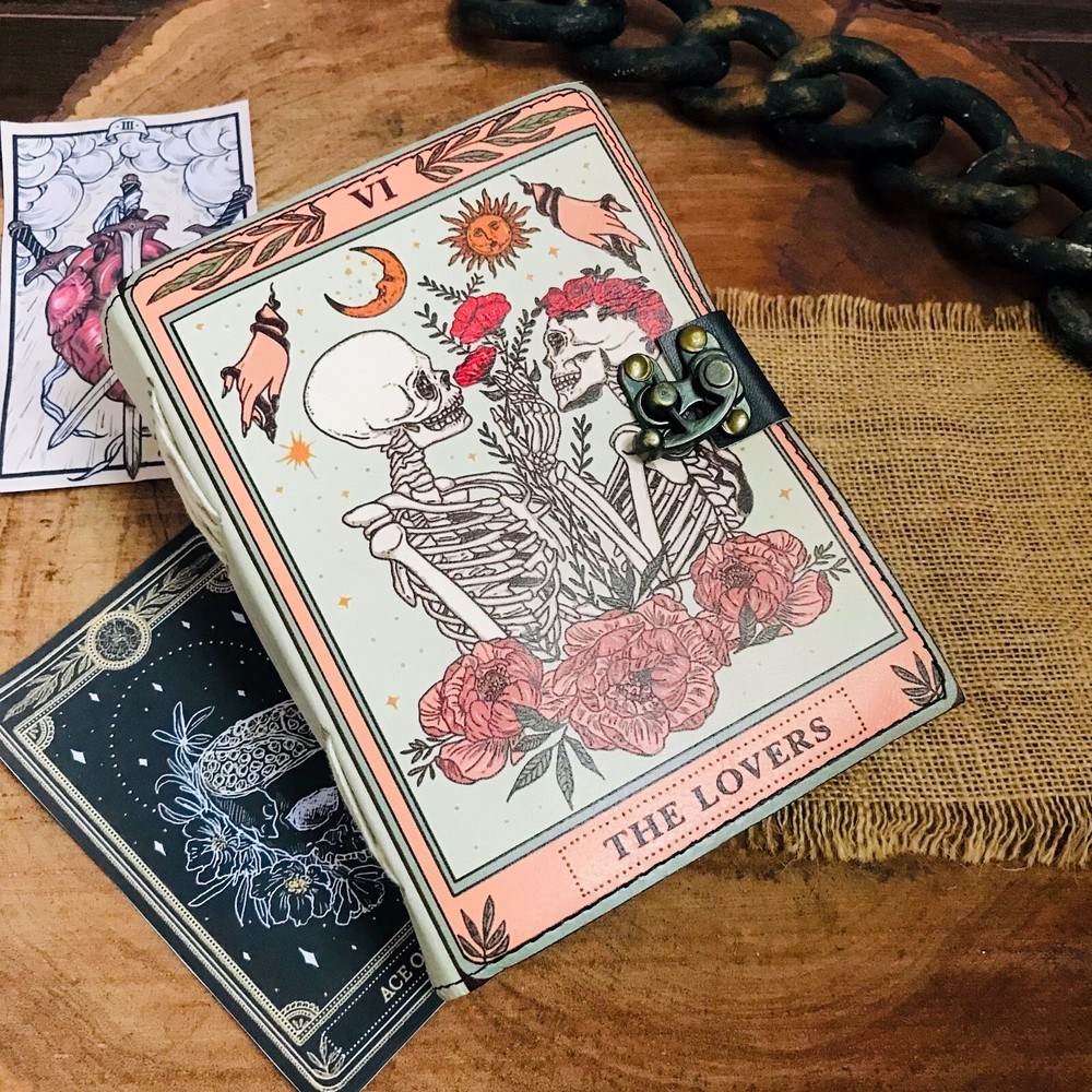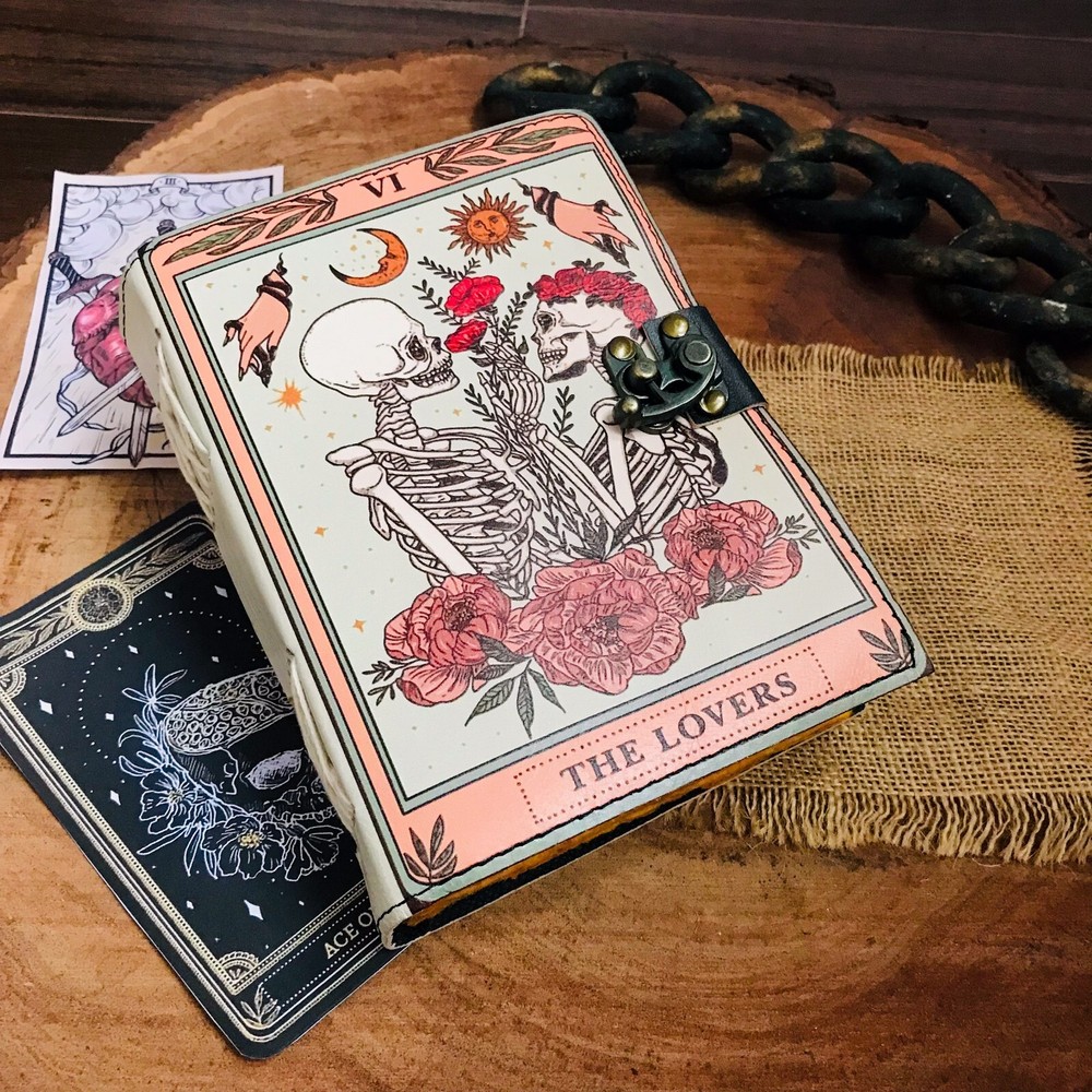 BEAUTIFULLY CRAFTED: Our handmade artisan leatherbound spellbook grimoire journals are crafted from genuine leather. The black colouring gives it a beautiful antique vintage feel. Being hand-made from natural leather. The cover features a beautiful gold designing.. VINTAGE LOCK AND STURDY BINDING - The vintage clasp lock will keep all your valuable writing locked inside.Sturdy hand stitched binding to make sure that no paper comes out loose from your Spell BOOK. PERFECT FOR GIVING: Suitable for both men or women to write in, this locking diary daily travelers notebook is perfect for an avid writer, or Harry Potter fan looking for a magic spell book. Ideal to give as a birthday gift, valentines, halloween, graduation or wedding anniversary present. Spell Book Tarot Journal Merchandise Popsocket Grimoire Wiccan Witch Prop Spells Decor Skull Lovers Blank Notebook Gift Props Spellbook Blanks With Clasp Coloring Books For Men Women Adult and you can keep this journal at your bedside as like memory of your loved ones.. USE ANY KIND OF PEN - Size: 5"X7" This Gothic gifts Sketch, Doodle, Write on your Book with a Calligraphy Pen Fountain Pen, Brush Pen, Ball Pen, Acrylic Colours, Watercolor and many more. We guarantee no bleed through. SIZE - 5X7 Inch. OUR PROMISE: We are positive you will love our products, but if you don't for any quality reason, we will replace or refund for up to 30 days after purchase. Our friendly customer service team are always available to answer any questions you might have. MANY USES - This aesthetic Lovers Journal Can be used as a Hocus Pocus gifts , the lovers tarot journal, gothic notebook, skull journal, spell books halloween decorations, book of spells halloween decor. grimoire spell book, drawing or sketching and compact for carrying in your bag. Ideal for alternative Artist Sketchbooks, Photo Album, Traveling Notes, Business Executive, Logbook, hocus pocus spell book , Journalists, Food Planner, old spell notebook, antique handmade skull journal