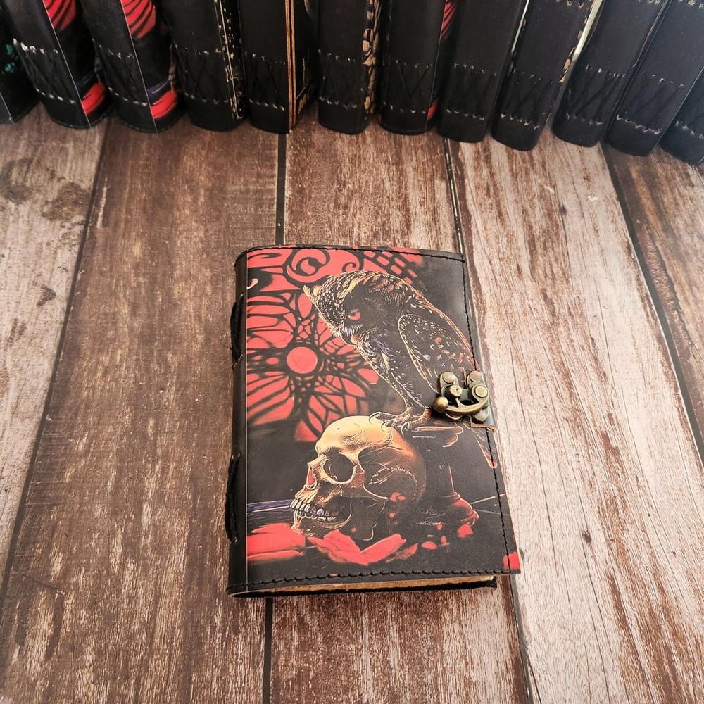 Capture thoughts, sketches, and dreams in this stunning handmade leather journal, featuring a beautifully embossed skull intertwined with a bird. Crafted from premium genuine leather, this vintage-style sketchbook is perfect for artists, writers, and dreamers. ✔️ Premium Leather Cover – Handcrafted from high-quality full-grain leather for a timeless, rustic look. ✔️ 200 Deckle-Edge Pages – Made from eco-friendly, unlined handmade paper for a unique writing and drawing experience. ✔️ Multiple Sizes Available – Choose from 7x5 inches, 10x7 inches, or 13x10 inches to suit any need. ✔️ Hand-Tied Binding – Durable and flexible, allowing the journal to lay flat when open. ✓ Halloween lovers & gothic aesthetics ✓ Artists & writers looking for inspiration ✓ Wedding & anniversary gifts for creative souls ✓ Dream journaling & personal reflections Versatile Use: This leather sketchbook works beautifully as a diary, art journal, travel notebook, spell book, or wedding guest book. Whether capturing everyday thoughts or intricate illustrations, it provides the perfect canvas for creativity.