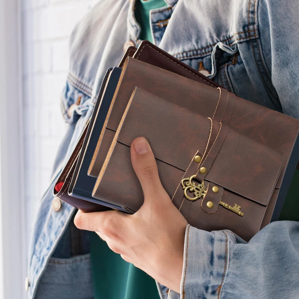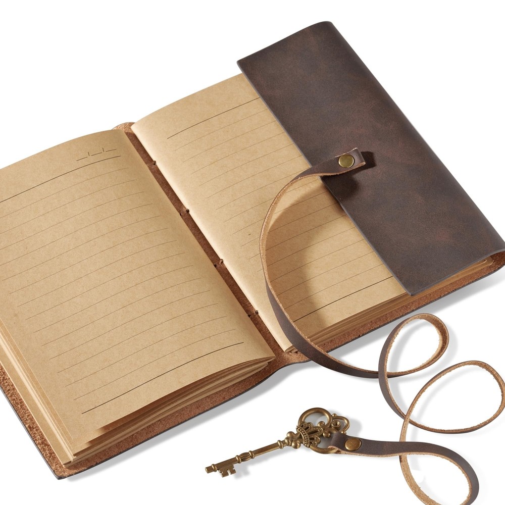 Leather Journal 5"x 7" Genuine Leather Journaling Notebook with Key - 200 Line Pages Handmade Leather Bound Journal for Diary Travelling (Vintage Brown) Product Details Color: Vintage Brown Size: 5"x 7" Brand: Cleather MPN: Brown UPC: 716035347484 EAN: 0716035347484 Brand: Cleather Color: Vintage Brown Theme: Book Sheet Size: 5-x-8-inch inches Pages: 200 Cover Material: Leather Style: Vintage Ruling Type: Ruled Special Feature: Lock Number of Items: 1 Manufacturer: Cleather Brand: Cleather Item Weight: 14.4 ounces Product Dimensions: 7 x 5 x 2 inches Item model number: Brown Color: Vintage Brown Cover Material: Leather Number of Items: 1 Size: 5"x 7" Ruling: Ruled Sheet Size: 5-x-8-inch inches Manufacturer Part Number: 23ClEAKYS Date First Available: May 17, 2023 Elegant and Functional: Our premium distressed journal, complete with a soft touch, genuine leather tie, and a key, adds old-world charm. Perfect for stylish men and women on the go, keeping track of daily to-do lists with ease and security. Perfectly Sized for Convenience: Embrace the handheld ideal with our compact 5"7" leather journal notebook, designed for effortless portability. Slip it into your bag and take it wherever life leads you. With 200 pages/100 sheets of smooth kraft paper, it's your canvas to capture both the everyday moments and the most exotic adventures in life. Seamless Versatility: Our leather journal is more than just a place to record your life and thoughts. Embrace its multiuse design as an artist's sketchbook, food diary, recipe notebook, rustic diary, daily notepad, vintage planner, or ledger book. With effortless elegance, it adapts to your every need, enriching your experiences on every page. Thoughtful & Timeless: Our rustic distressed leather journaling notebooks are heartwarming gifts for loved ones on Teacher's Day, Thanksgiving, Christmas, birthdays, or graduation. Its timeless beauty and practicality make it an ideal choice for men, women, moms, dads, brothers, sisters, colleagues, and more. Show your appreciation with this cherished keepsake. Tailored to You: Discover the Cleather leather notebooks in 2 sizes (5x7 in, 6x8 in) , catering to your preferences. We're here to assist you every step of the way if you have questions.