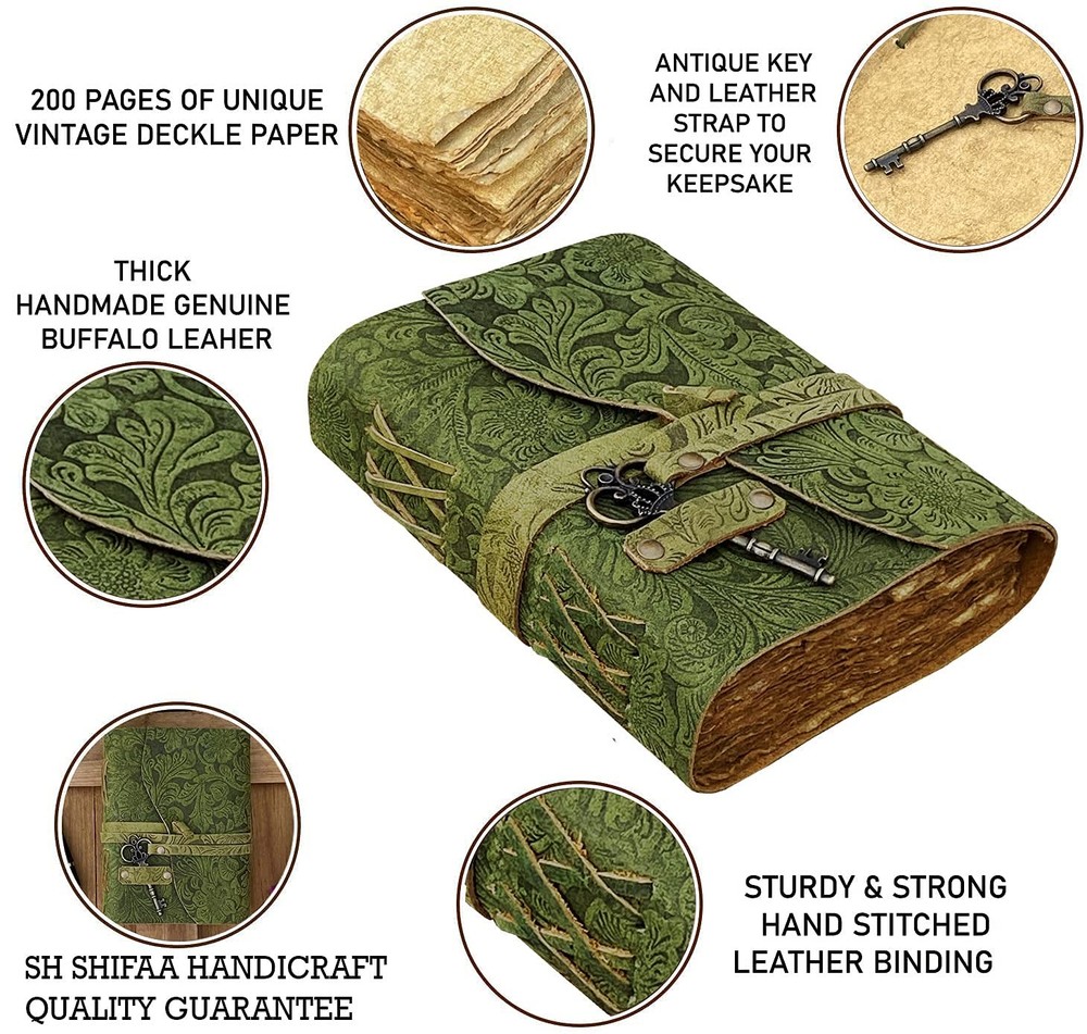 Antique Paper - Vintage Journal Is Made Of Unique Vintage Paper Which Looks Like It Was Pulled From History. You Will Love The Old Looking Handmade Cotton Paper (200 Pages) Which Is Unique To Our Vintage Journals. It'S A Special Birthday Gift , Gifts For Sister , Gifts For Mom , Gifts For Women ,Aesthetics Gifts Keeper Of Your Dreams, Special Gifts For Your Loved Ones. Use Any Kind Of Pen - Sketch, Write On Your Journal Notebook With A Calligraphy Pen Fountain Pen, Brush Pen, Ball Pen, Acrylic Colours, Watercolor And Many More. Ideal for alternative Artist Sketchbooks, Photo Album, Traveling Notes,Wedding Guestbook , Funeral Book , Business Executive, Gratitude Journal , To Do Journal , Budget Planner , Purpose Planner , Fitness Journal , Password Book , Legend Journal , Selfcare Journal , Logbook, Poetry Work, Journalists, Food Planner, Instagram Scrapbook and Bible Journaling Sketch, Doodle. Soft Supple Thick Genuine Leather - The Leather Journal Is Made From Naturally Tanned Full Grain Leather Which Feels And Smells Amazing. It'S Soft And Very Comfortable In The Hands. Don'T Be Fooled With Competitors Using Cheap Substitutes, This Antique Diary For Women Steal The Real Deal. Stylishly Medieval- Ancient Looking Rustic Cotton Paper Combined With The Beauty Of Distressed Leather, Hand Stitched By Artisans, Creates A arthur morgan Keepsake You Will Cherish Forever. Makes A Great Gift For The Men, Women, And Wiccans In Your Life! Why Not To Add The Grimoire Spell Book Into Your Library. Sturdy Binding, Leather Wraparound And Key - Sturdy Hand Stitched Binding To Make Sure That No Paper Comes Out Loose.The Leather Wraparound With A Nice Key That Slips In Will Make Sure That The Papers Inside The Vintage Books Journal Leather Are Safe And Secure. Leather Junk Notebooks Serves the Best. as Your Personal Diary. This Easy To Carry Personal Diary Is Perfect To Use As A Health Journal, Sketchbook, And Poetry Journal. Unique Gifts, Graduation Gifts , Retirement Gifts , Novelty Gifts , Birthday Gifts ,Couple Gifts, Sister Gifts, Mom Gifts , Gifts For Her , College Gifts , Gratitude Present. It’S An Ideal Butterfly Gifts Journal