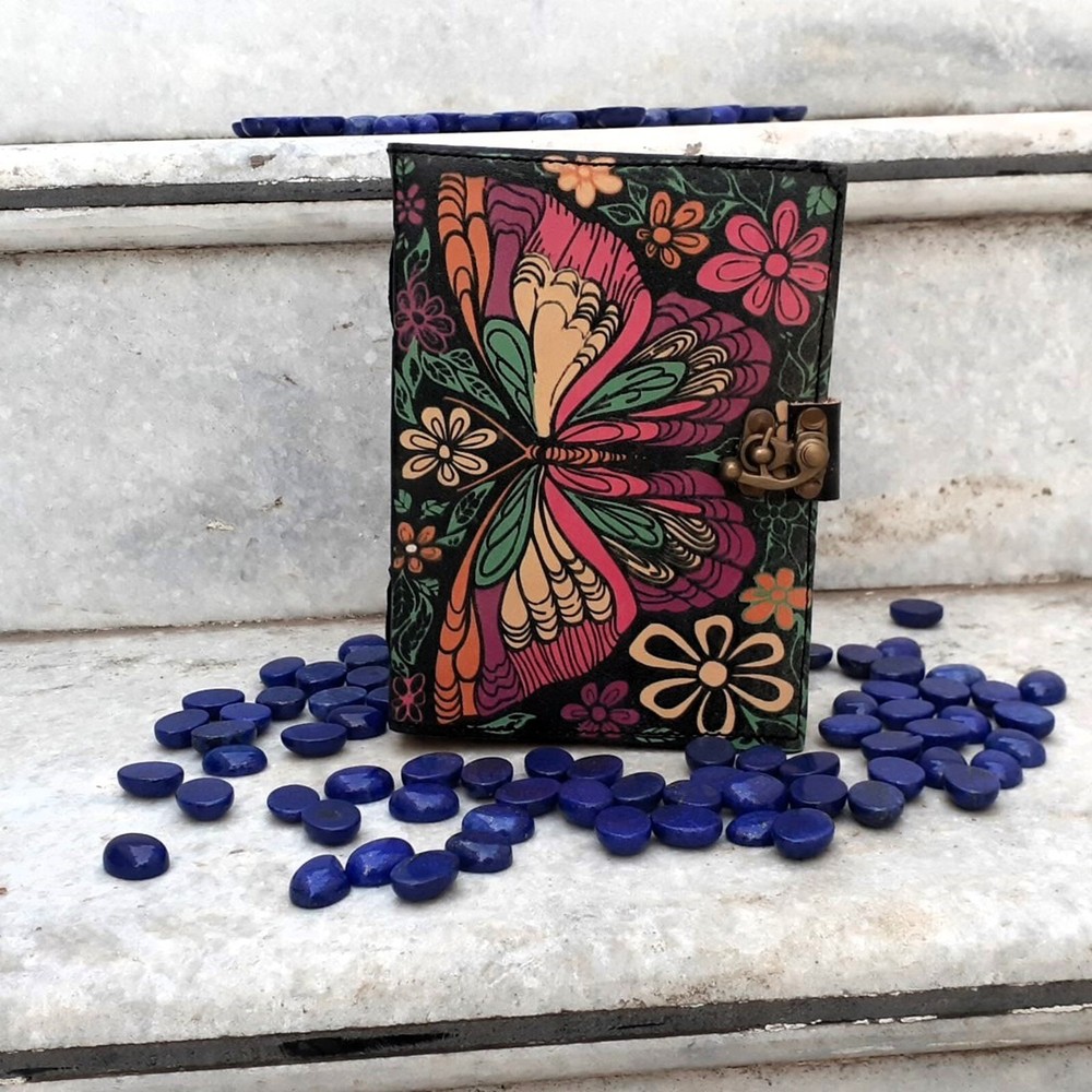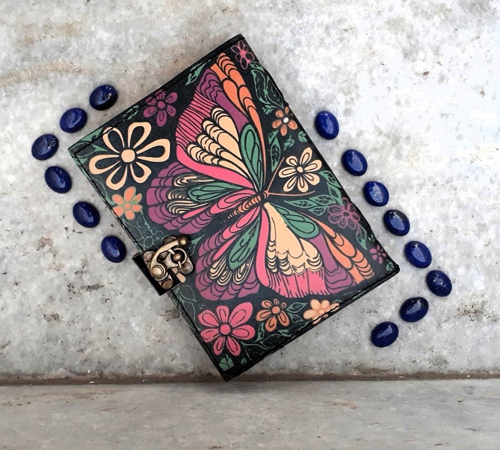 1. This Leather Journal Butterfly Notebook is the perfect gift for any occasion, especially weddings. Crafted with high-quality leather, this notebook exudes elegance and sophistication. The intricate butterfly design on the cover adds a touch of whimsy and charm, making it a unique and eye-catching piece. Whether you use it as a sketchbook, writing journal, or diary, the deckle pages provide a rustic and vintage feel. 2. What sets this notebook apart is its personalization option. You can have your initials or a special message engraved on the cover, making it a truly one-of-a-kind gift. The leather cover not only adds durability but also gives it a timeless appeal that will last for years to come. With its compact size, it is perfect for carrying around and jotting down your thoughts, ideas, or sketches on the go. 3. Whether you're a writer, artist, or simply someone who appreciates the beauty of a well-crafted journal, this Leather Journal Butterfly Notebook is a must-have. It combines functionality with style, making it a versatile accessory that can be used for various purposes. Whether you're using it for work, travel, or personal use, this notebook is sure to become your go-to companion. Treat yourself or surprise a loved one with this exquisite and personalized gift that will be cherished for a lifetime.