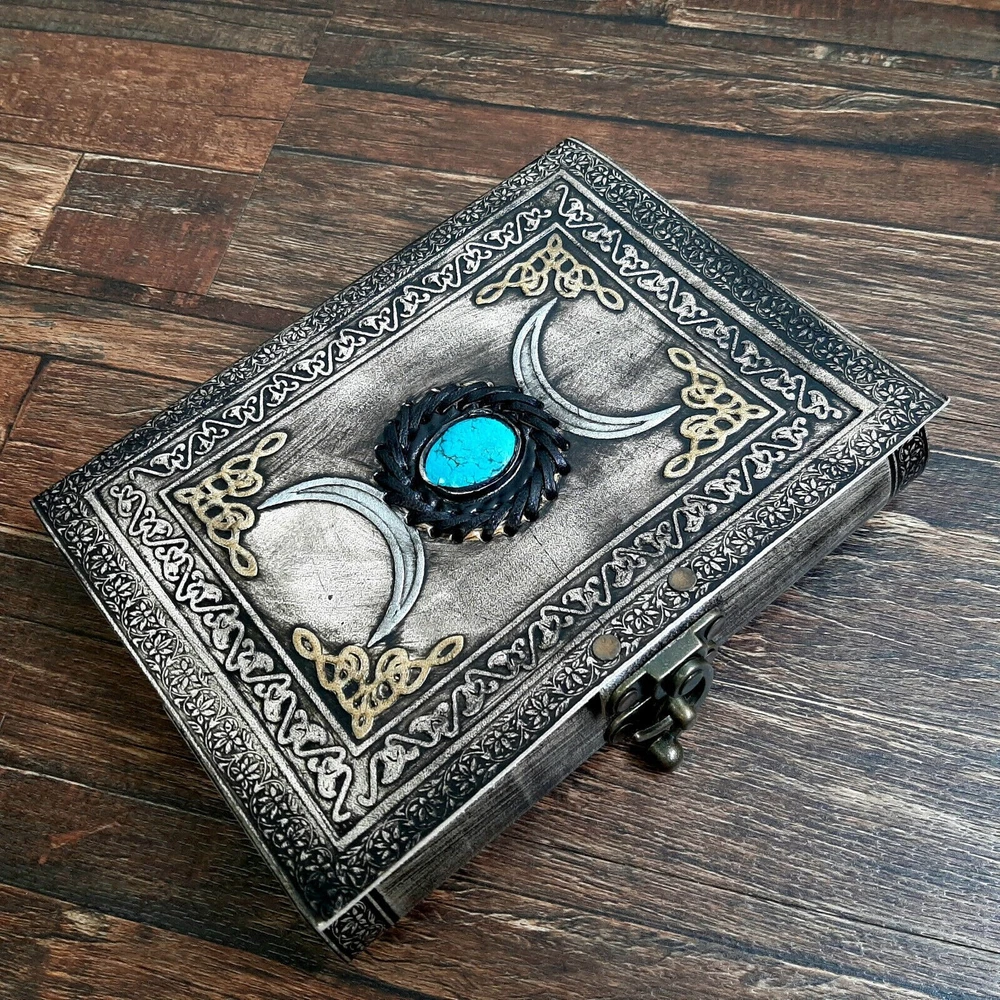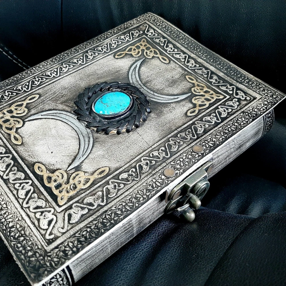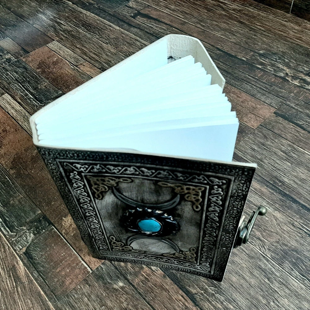 This exquisite leather journal features a beautiful turquoise stone on its cover, adding a touch of elegance and uniqueness to the design. Perfect for use as a diary, sketchbook, or notepad, this embossed journal contains 200 pages for all your writing and drawing needs. Ideal for those who appreciate both style and functionality, this leather journal with a turquoise stone is a must-have accessory for any creative individual.