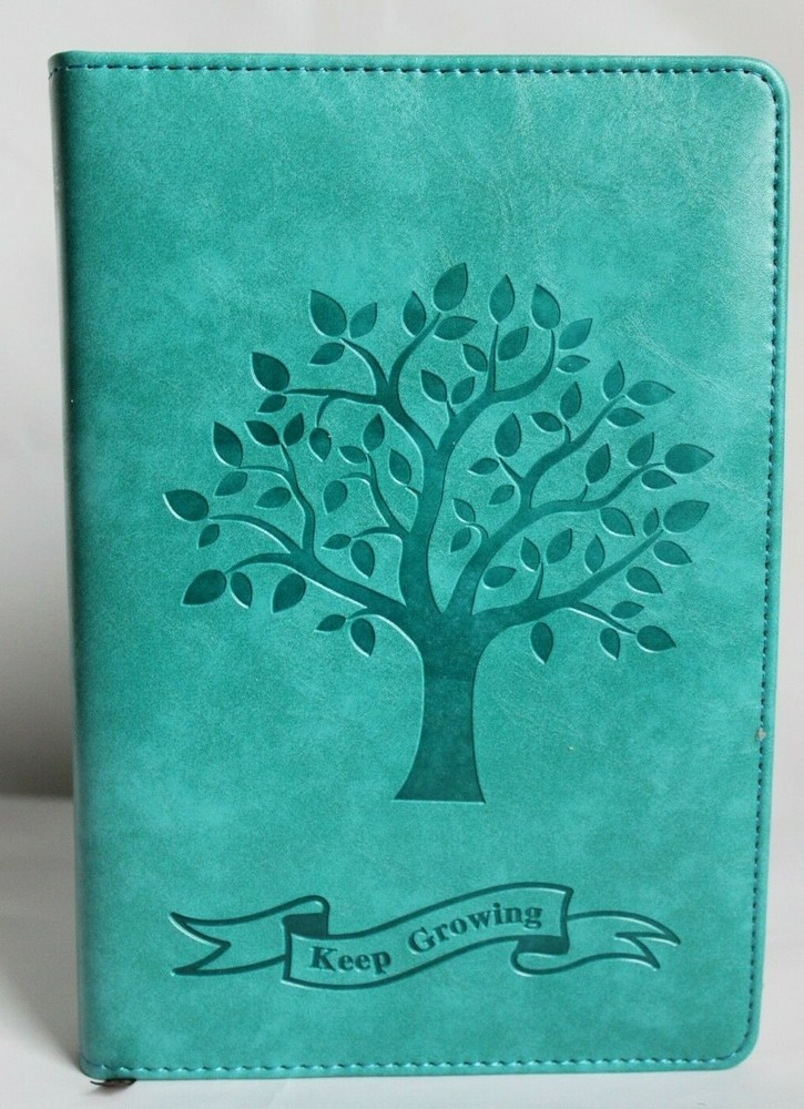 SAME DAY SHIPPING FROM THE US Leather Journal Keep Growing Notebook Embossed Handmade Travel Diary, Perfect gift NEW 8.5in L x 6 in W(closed) HAND MADE REAL LEATHER : Keep Growing and Tree are embossed front soft cover with hidden pen holder. QUALITY THICK CREAM PAPER Lined blank paper sheets (both sides) - plenty to jot down a note, memories, daily plans, scribble a rough sketch or ideas for your poetry, novel or bullet journal. This timeless leather book journal is not refillable. No bleed through with fountain pens so any pen type can be used in this retro real leather notebook.