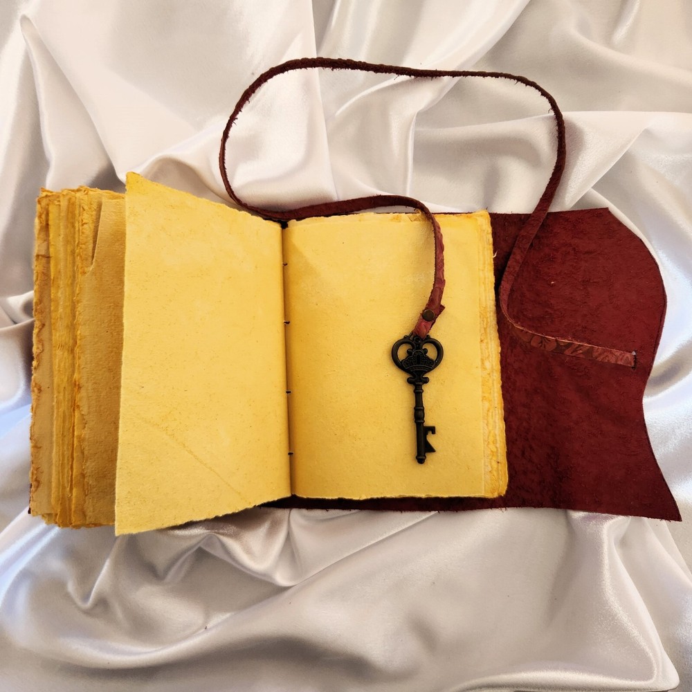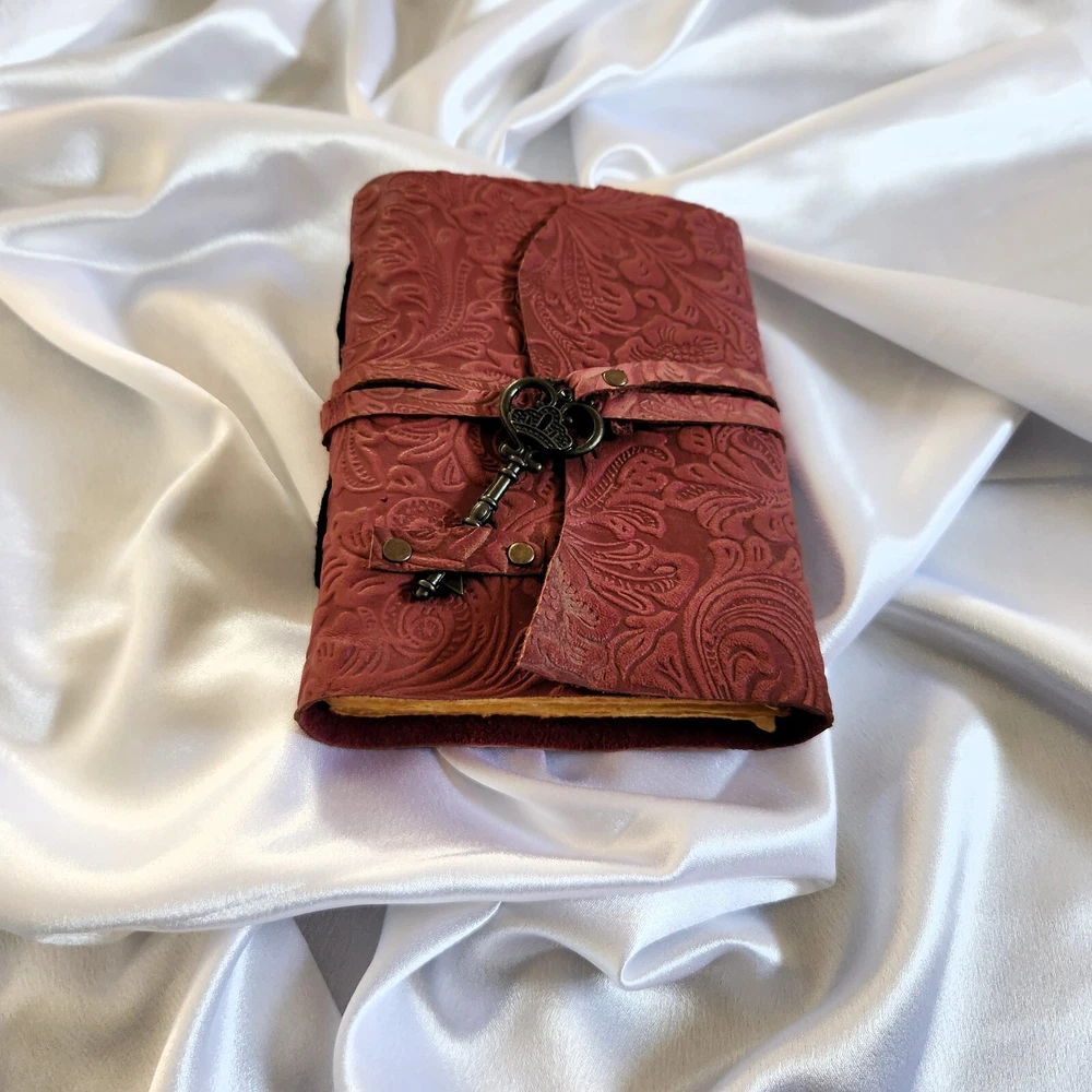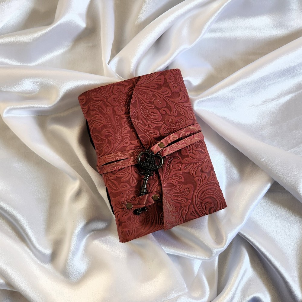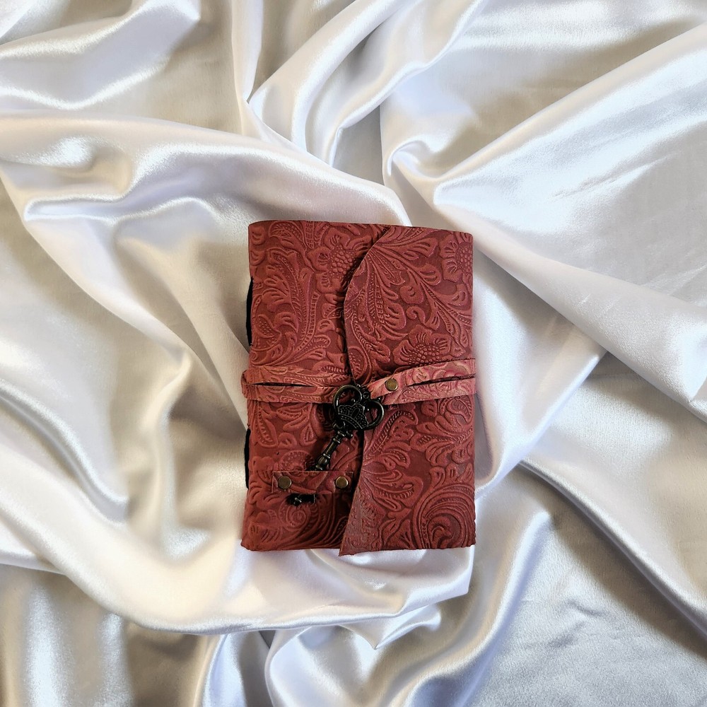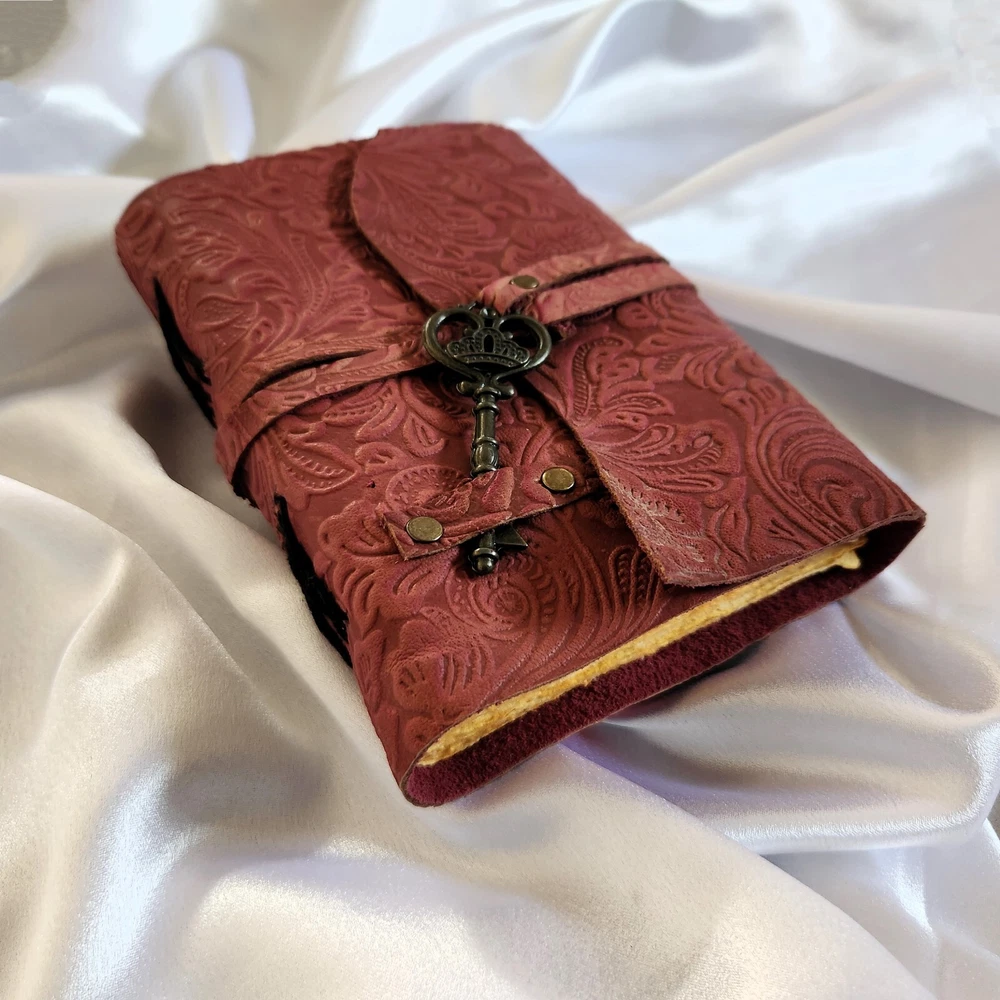 Leather Journal Vintage-inspired key Embossed Leather Dairy, Dream journal, Notebook, Notepad, Sketchbook, Writing journal gift. Introducing our exquisite red leather journal with a vintage-inspired key on top. Crafted with the utmost attention to detail, this journal is the perfect companion for capturing your thoughts, dreams, and inspirations. The embossed leather cover adds a touch of elegance, while the 200 deckle edge pages provide ample space for your writings. Whether you use it as a diary, dream journal, notebook, notepad, sketchbook, or writing journal, this leather lace-bound gem makes for a thoughtful and timeless gift. SIZE - 7*5 INCH