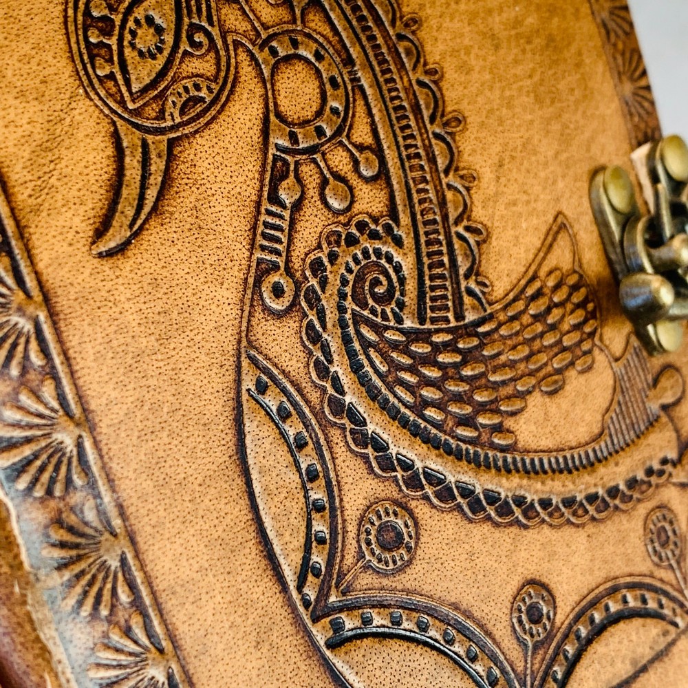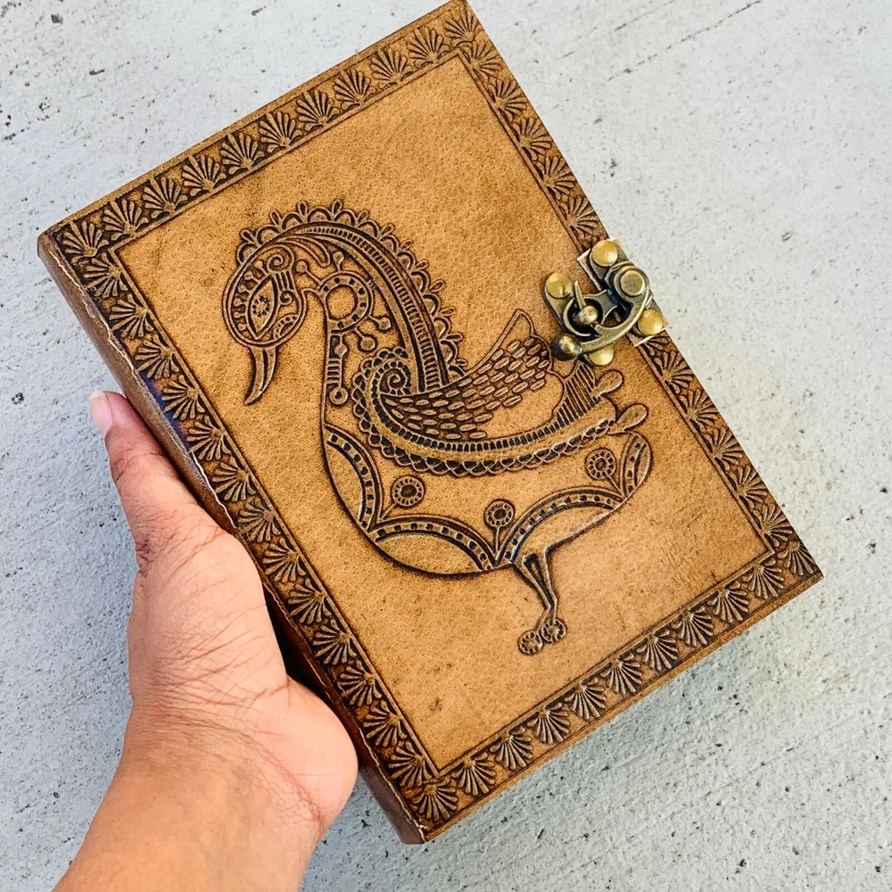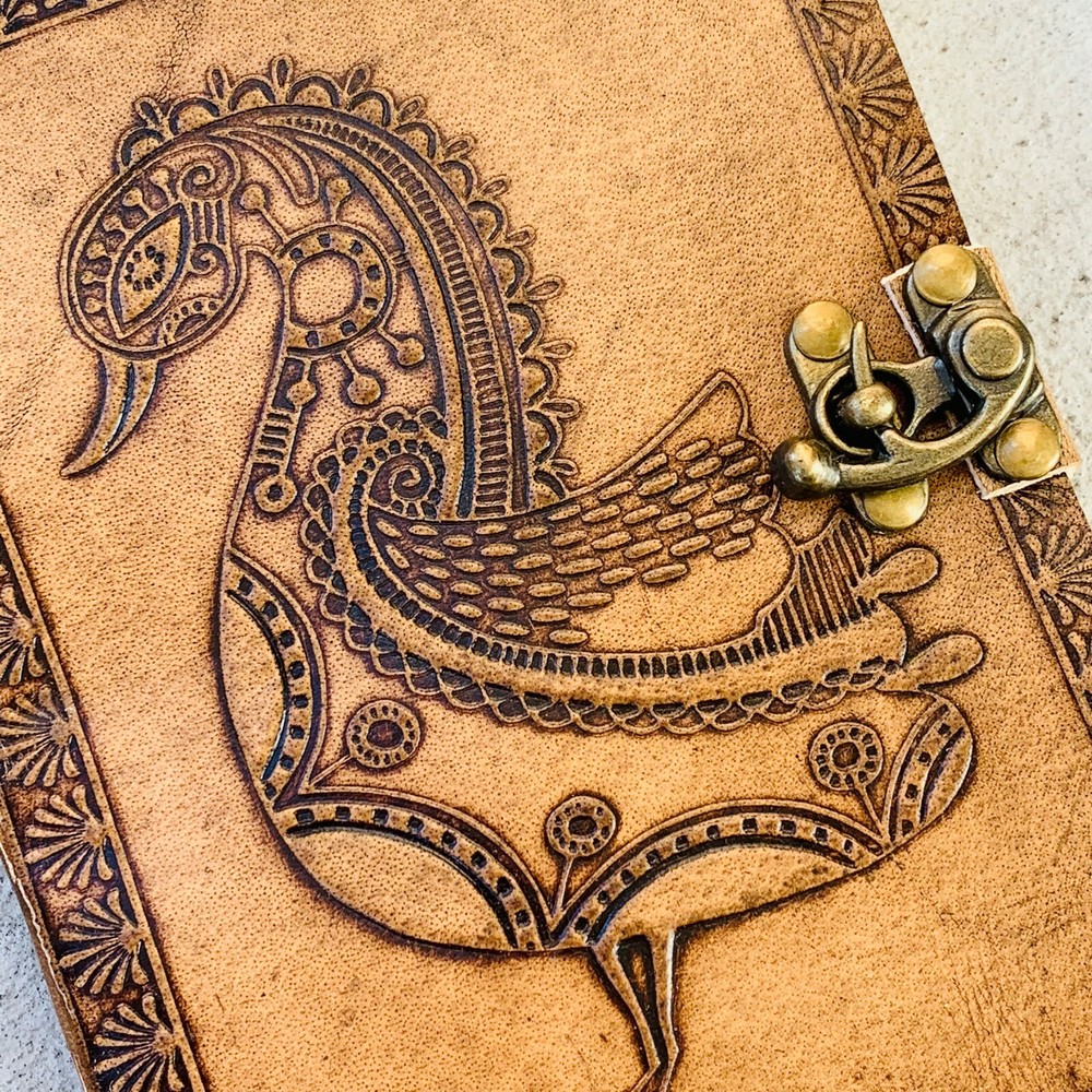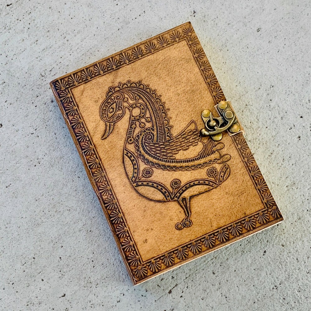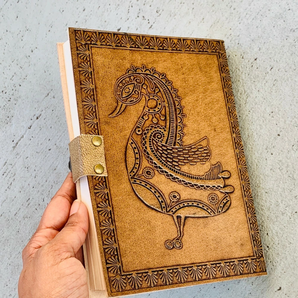 Handmade Leather Peacock Duck Goose Bird Journal 7x5 Diary Book
