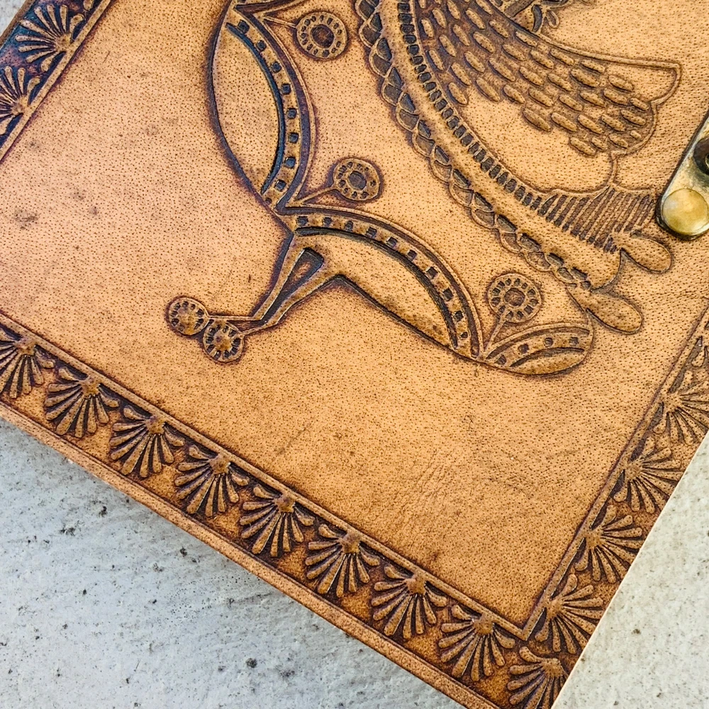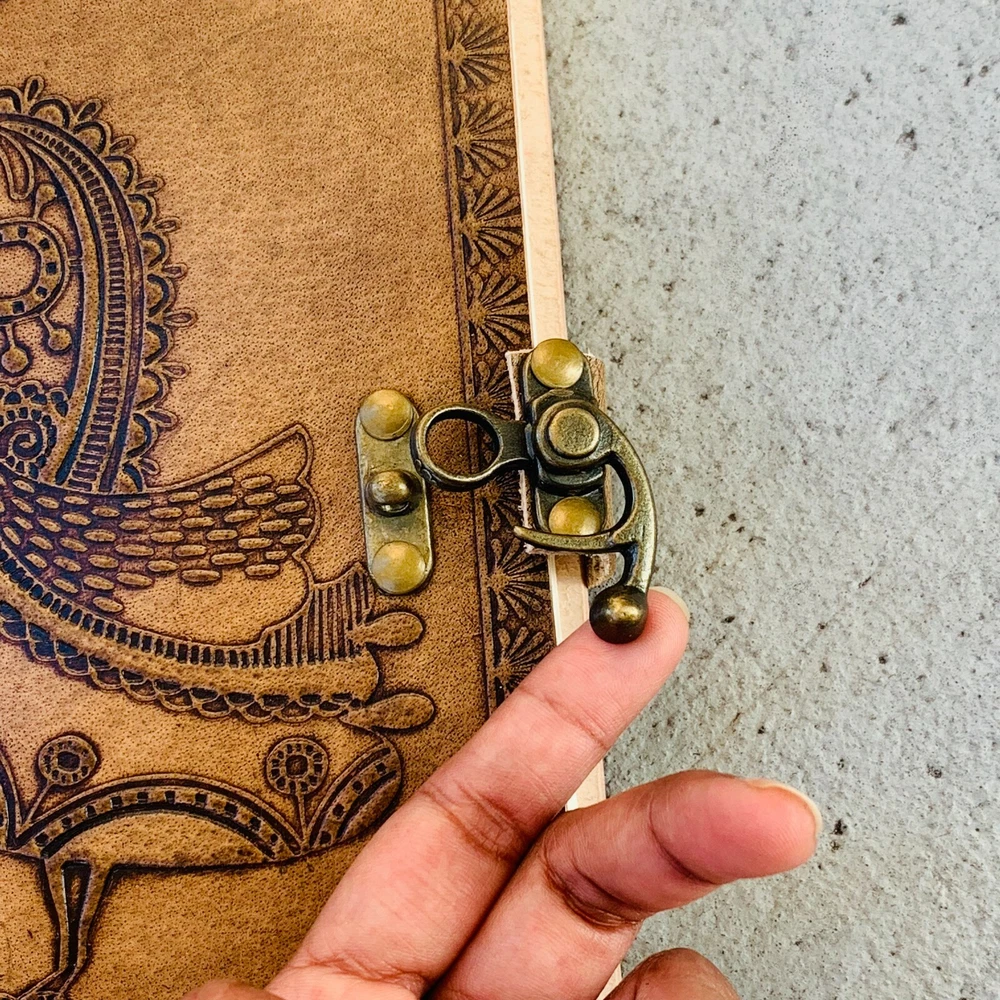 These journals are hand made from leather and hand embossed. The paper is naturally treated cotton paper which are best suited for writing, noting, jotting, sketching, doodling etc. Product Dimensions...