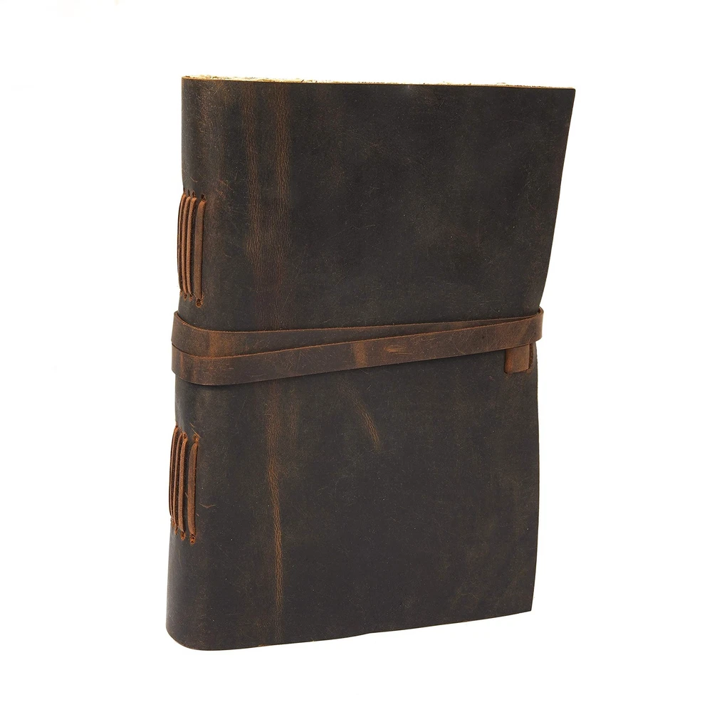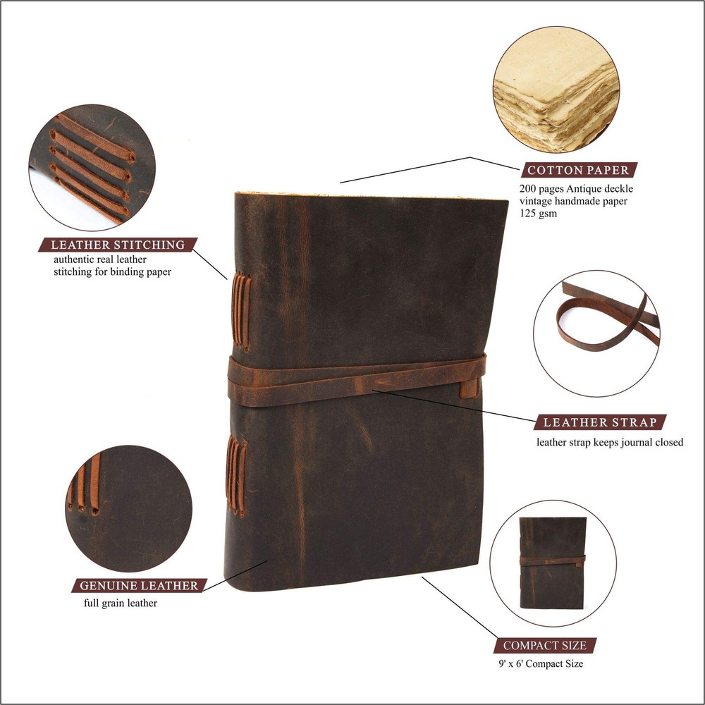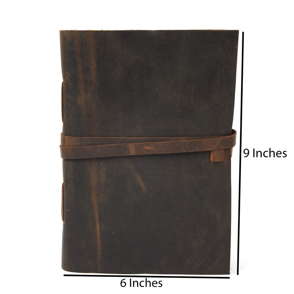 Leather Journal Travel Diary, Handmade Vintage Bound Notebook for Men & Women, Antique Finish, Genuine Buffalo Leather- Quality Unlined Paper Perfect for Notes, Art Sketchbook, 9X6 Inches, Brown ✓ Free 60 Day Returns ✓ Free Express Shipping Description: BEAUTIFUL JOURNALS THAT WILL LAST Beautifully Soft and Durable Dark Brown Genuine Water Buffalo Leather (Not Faux or PU leather used) No glue used - hand-stitched binding means the pages stay firmly in place (Paper is not refillable) A lovely distressed vintage style with a gorgeous, real leather scent Handmade leather - naturally tanned with oil & Deckled, not with acids that end up in rivers. Naturally tanned with special oils, if the distressed leather gets marked or scratched, you can rub these markings and they will fade away. The hand-crafted nature of these journals means no two are quite the same. The soft brown leather gives a vintage look with the asymmetric flap adding a certain rustic charm. It is an utterly unique and wonderful gift for a friend or to treat yourself to as a special keepsake. Tree-Free Paper & No Bleed Through 100 sheets/200 pages (counting both sides) of Blank/Plain/Unlined/Unruled, brown-colored paper Hand-crafted with Recycled Cotton paper, perfectly complementing the brown leather Tree-free and Acid- free means you are purchasing a product that is less harmful to the environment. The perfect number of pages, not too bulky, so it is easy to write in from the very first page 125gsm thickness means it is beautifully soft to write and draw on, use any pen without any ink bleeding through Made by gifted artisans using handcrafted techniques passed down through many generations. Our Leather Journals come in 2 handy sizes: Medium 7" x 5" Portable Traveller’s size Large 9" x 6" For Home and Office use Easy for handwriting, drawing, or sketching and compact for carrying in your bag. Use it for Daily Notepad or Bullet Journal Artists Sketchbooks or Poetry Work Instagram Photobook or Scrapbook Girls Diaries or Teen Journaling Food Planner and Grocery Lists Travel Diary Weight Watchers Records Appointments Reminders Journalists Notebook. Features: DURABLE BUFFALO LEATHER made from premium quality buffalo leather is second to none with a wonderful leather smell, its soft-feeling, yet super tough. Oil pulled leather finish. Beautifully crafted & unique design. Soft & Supple Dark Brown Genuine Water Buffalo Leather with a real leather scent. Being hand-made from 100% natural leather, our journals can vary in look & shade, producing a unique item, no two are quite the same - a special keepsake for your thoughts, plans & ideas. RUSTIC DESIGN- It has an asymmetric shape at the front as its hand made and decorative leather string stitching on the spine adds antique charm to this lovely keepsake for kids, men, women, students, artists, journalists, or travelers of all ages. A long leather strap wraps around the journal to secure the notebook firmly when not in use. Perfect for all your daily writing and drawing needs. This versatile notebook is ideal for several uses and allows for easy handwriting, sketching, and drawing EARTH-FRIENDLY: 100 sheets/200 Handmade cotton pages (counting both sides) of Blank/Plain/Unlined/Unruled, brown-colored paper (NON-REFILLABLE), hand-crafted with eco-friendly recycled cotton which is acid-free & tree free - environmentally kind! This rustic leather notebook from Rustic Vintage is the perfect writing companion for journal lovers and anyone with a taste for things with an antique or vintage feel. NO BLEED THROUGH- You can Easily Draw through from any type of Pencil, Pen, Ball Pen, Gel Pen, Sketch Pen, Ink Pen, Sparkle Pen will glide through the paper smoothly without any ink bleeding through on this thick quality paper weighing 125gsm. Easy for handwriting, drawing, or sketching and compact for carrying in your bag. Ideal for Artists, Diaries, Travelling, Business, Teen Journals, Poetry Work, Journalists, laboratory notebook, Food Planner, Scrapbook, and Christian Bible Journaling. PERFECT COMPACT SIZE: for any writer 9" x 6" so easy to carry when traveling or to keep at home or work next to your bed or desk. The gift box included making this a perfect gift for Kids, Adults, Young & Elderly Man & women for Birthdays, festivals, Christmas, Anniversaries. Whether you are a huge fan of keeping a journal or just beginning, this rustic writing diary is here for you! Such a great way to empower your thoughts and ideas, record important life events, or simply blow off some steam! Product Details: Brand: RusticVintage Color: Brown Unlined Theme: Book Sheet Size: 9-x-6-inch Inches Style: 9X6 Inches - Brown Unlined (Deckled Edge) Ruling Type: Plain Special Feature: Lock Number of Items: 1 Product Dimensions: 9"L x 6"W Binding: Leather Bound Manufacturer: Rustic Vintage Brand: RusticVintage Item Weight: 2.82 ounces Product Dimensions: 6 x 1.5 x 9 inches Is Discontinued By Manufacturer: No Color: Brown Unlined Material Type: leather Number of Items: 1 Size: 9 Inches X 6 Inches Ruling: Plain Sheet Size: 9-x-6-inch Inches Paper Finish: Matte Manufacturer Part Number: JB 006 Date First Available: November 24, 2020