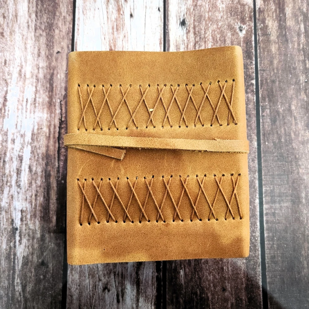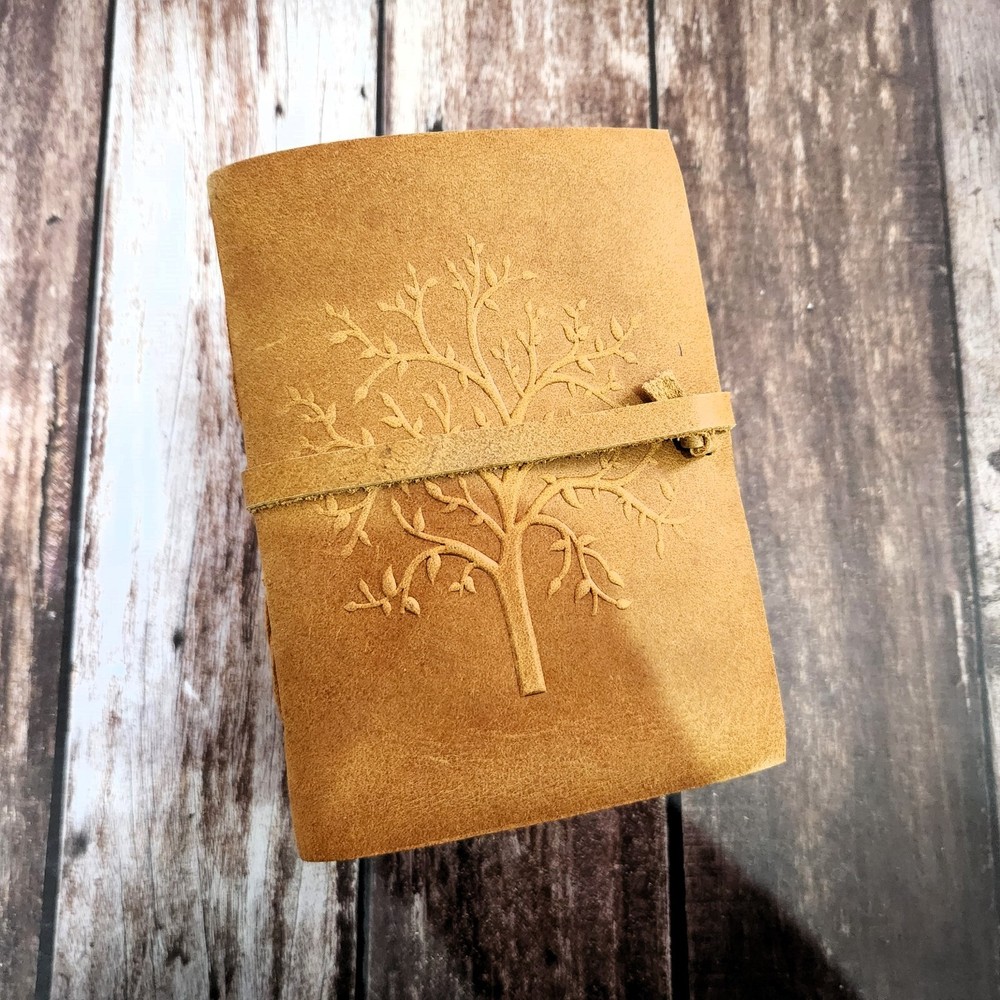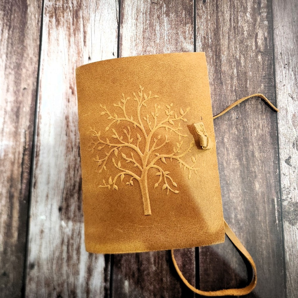 This exquisite leather journal features a beautiful tree design embossed on its cover, making it a unique and elegant choice for anyone looking to jot down their thoughts or sketches. The journal is bound in high-quality leather, ensuring durability and a luxurious feel. With 400 deckle-edged pages, this writing journal provides ample space for creativity and expression. Measuring at 7 by 5 inches, this leather journal is the perfect size to carry around and capture inspiration on the go. Whether for yourself or as a thoughtful gift for an artist or writer, this leather journal with a tree design is sure to impress and inspire.