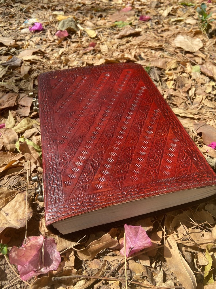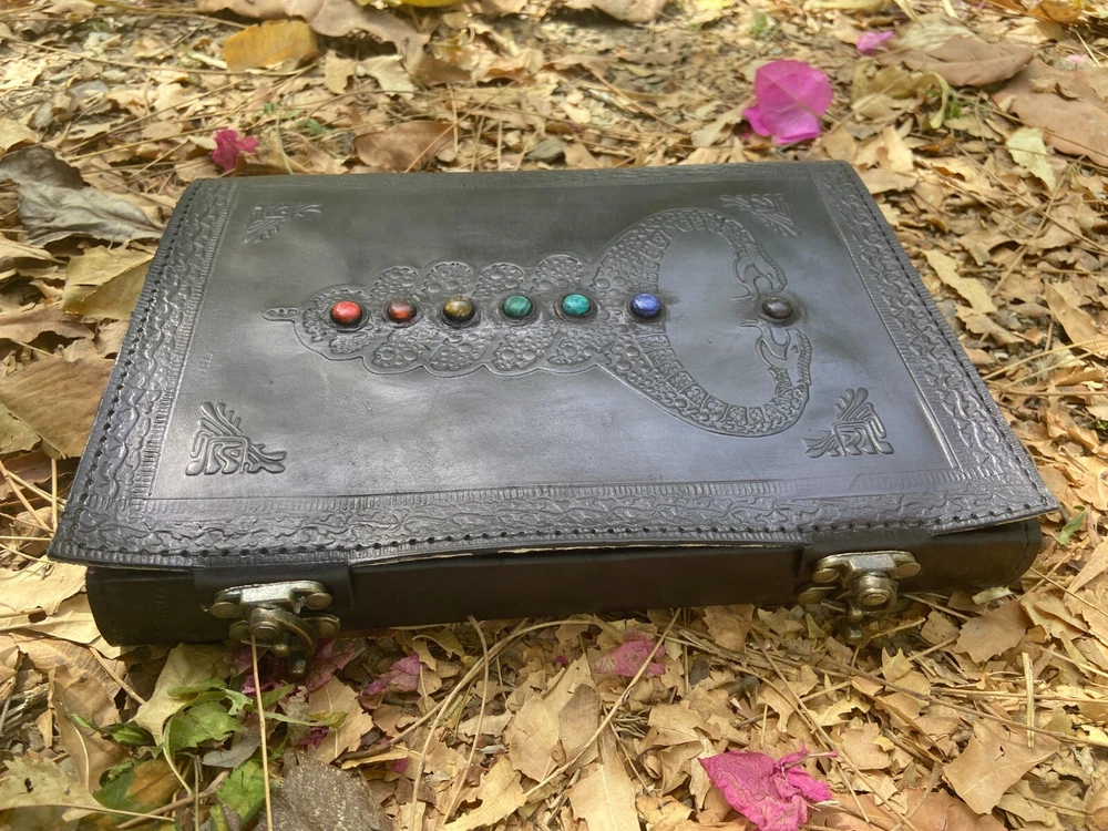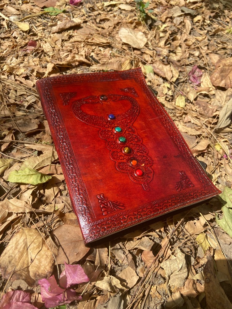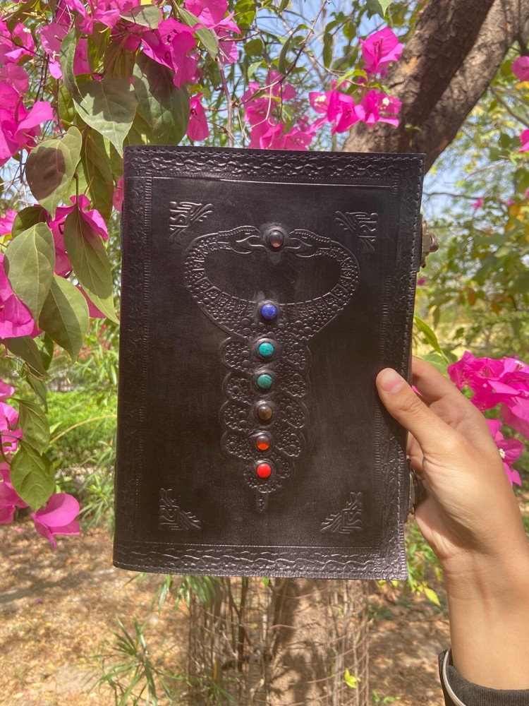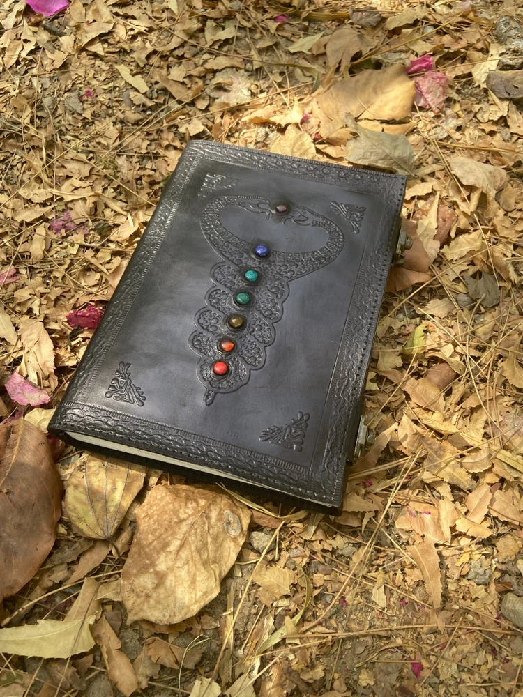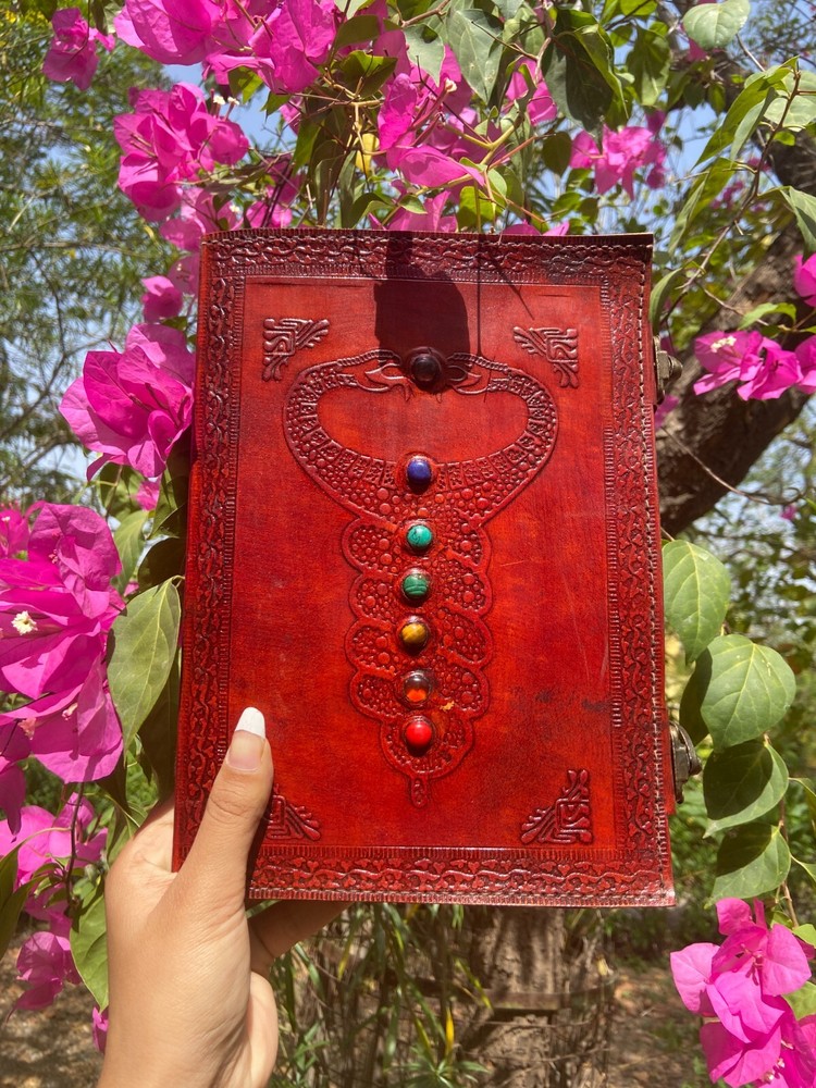 Beautifully crafted handmade journal with free express delivery.. Our beautifully embossed leather journal is ideal for the passionate writer in your life, give them an inspirational gift they will cherish. Handmade, eco-friendly and Fair Trade, this leather journal is the perfect way to note down all of your thoughts and it also makes a positive difference to the communities who make them. Symbolising a fresh start, positive energy and good health as well as a connection to nature, the tree of life journal is ideal for the more spiritual person in your life and could make a really special gift. Beautifully Handcrafted Design: Double dragon with Stone (Front Cover), Diagonal Floral and Geometric Design(Back Cover) A unique lock which increases its beauty and makes it more antique in looks Journal Size: 7X10 Pages: 200 Pages (Counting Both Sides)
