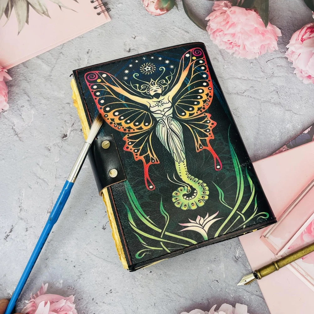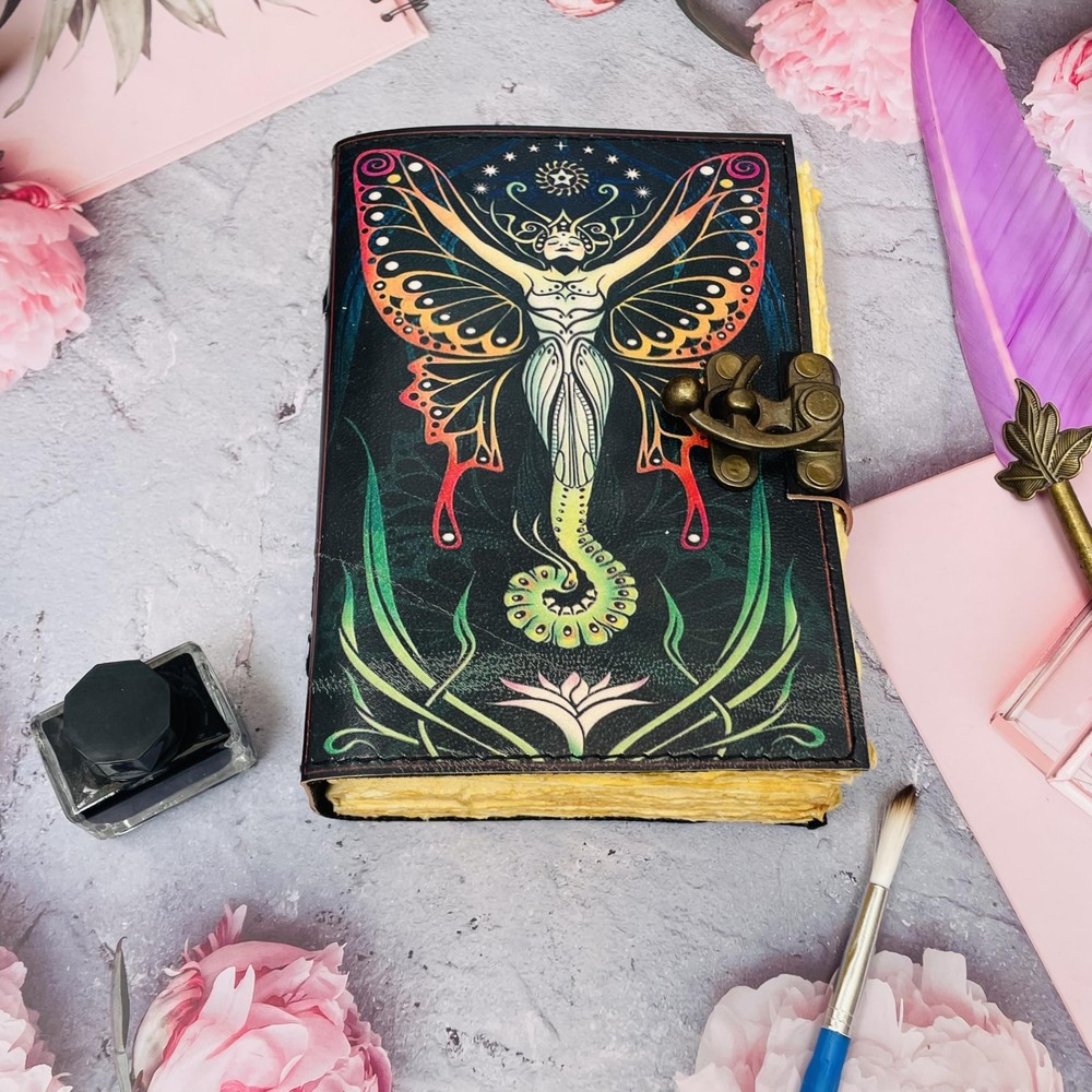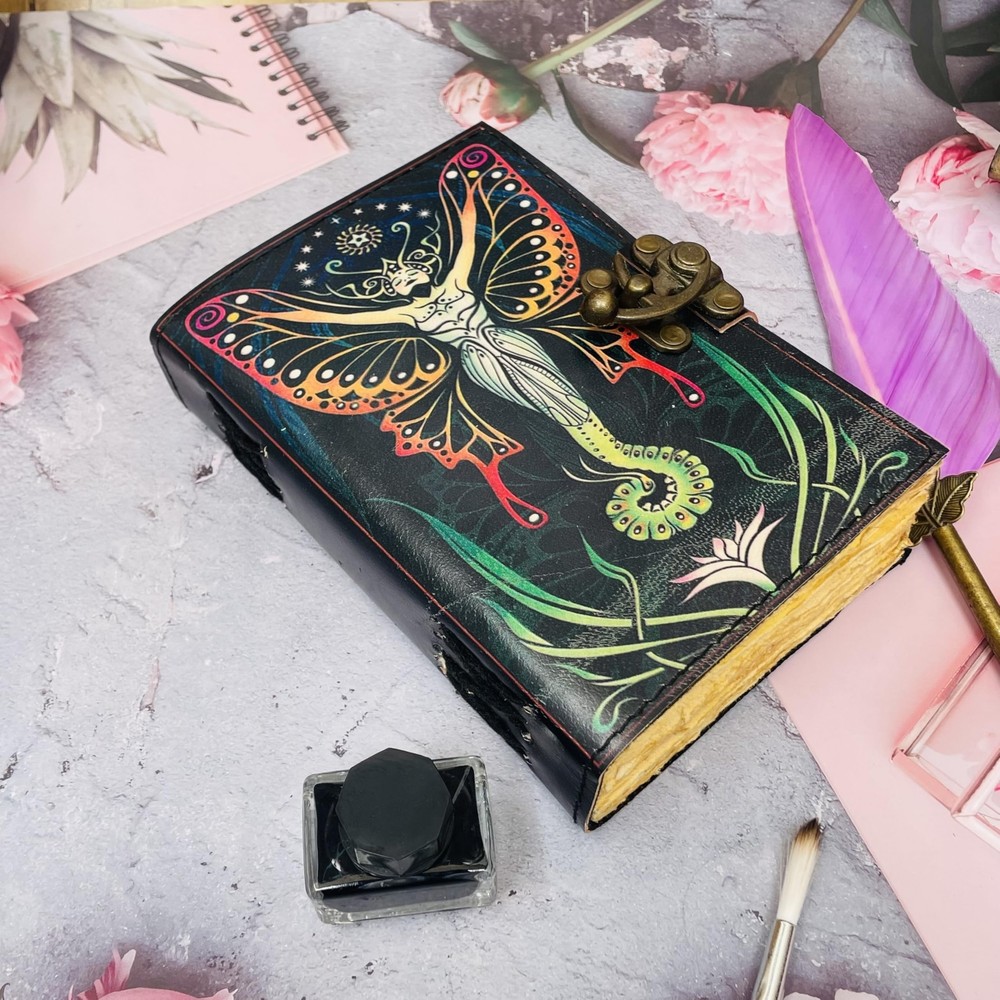 Leather Journal - Vintage Leather Journals, Handmade Blank Spell Books, Unlined Drawing Notebooks With Clasp, Butterfly Journal For Women Wiccan Decor, leather bound journal for writing (7x5) Product Details Size: 7x5 Brand: PL PEARL LEATHER MPN: PL236955 UPC: Does not apply EAN: Does not apply Brand: PL PEARL LEATHER Color: CHARCOAL Theme: Book Pages: 200 Pages Cover Material: Leather Style: Butterfly journal Ruling Type: Plain Special Feature: Lock Pattern: Printed Unit Count: 1.0 Count Manufacturer: PL PEARL LEATHER Brand: PL PEARL LEATHER Item Weight: 11.4 ounces Product Dimensions: 5 x 1.5 x 7 inches Color: CHARCOAL Cover Material: Leather Size: 7x5 Ruling: Plain Manufacturer Part Number: PL236955 Date First Available: June 27, 2024 Handmade: This journal is meticulously handcrafted with vintage leather artisanal look. The vintage clasp lock will keep all your valuable writing locked inside . Sturdy hand stitched binding to make sure that no paper comes out loose from your Spell BOOK. Versatile: Suitable for use as a book of shadows, spell book, vintage leather notebook, handmade leather journal , vintage notebook journal , drawing journal, unlined journal notebook , wiccan journal , pretty journal , leather journal deckle edge paper , leatherbound writing journal , or general notebook. BUTTERFLY - Leather journal witchcraft book of shadows notebook is made with 200 pages of Antique Paper which looks like it was pulled from history. You will fall in love with the the antique handmade cotton paper which is unique to our Vintage Journal Notebook The witchcraft supplies journal is printedhelps to reveal inner truth within yourself and encourage self-awareness and self expression. We have taken extra to make sure that the emboss is perfect in every piece. Sketch, Doodle, Write on your Leather Blank Spell Journal with a Calligraphy Pen Fountain Pen, Brush Pen, Ball Pen, Acrylic Colours, Watercolor and many more. We guarantee no bleed through. OUR PROMISE: We are positive you will love our products, but if you don't for any quality reason, we will replace or refund for up to 30 days after purchase. Our friendly customer service team are always available to answer any questions you might have. Embrace the timeless charm of handcrafted artistry with this exquisite leather journal. Crafted from premium vintage leather, each journal is a unique masterpiece, bearing the marks of its artisanal creation. The intricate butterfly design embellished on the cover adds a touch of whimsical allure, making it a captivating addition to any collection. Ideal for journaling, sketching, or capturing your innermost thoughts, this unlined journal offers a blank canvas for your creativity to flourish. With its sturdy clasp closure, your musings remain securely safeguarded, allowing you to carry this enchanting tome wherever your adventures lead. Whether as a cherished personal companion or a thoughtful gift for the free-spirited soul, this leather journal promises to ignite the imagination and inspire the scribe within. Embrace the art of storytelling and let your words take flight upon its handmade pages.
