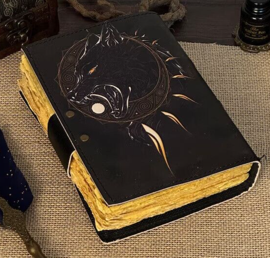 Handmade Leather Journal with Wolf Print - Perfect Gift Notebook