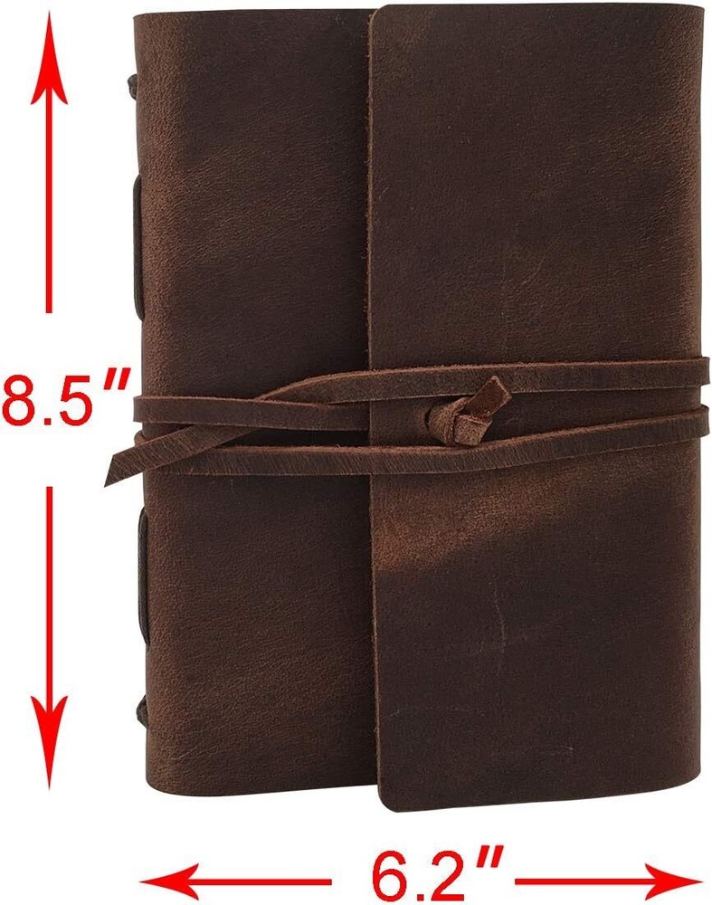 GENUINE LEATHER CRAFTSMANSHIP – Crafted with genuine leather, this leather journal offers a soft touch exterior with natural, distressed look that’s truly exclusive MULTIPURPOSE JOURNAL & PLANNER – This versatile men’s and women’s journal can be used as an appointment book, daily journal, sketchbook, or travel diary PREMIUM QUALITY PAPER – Every leather journal notebook is filled with 120 sheets of 100gsm weight, 7 mm ruled, 2-sided kraft paper that fits most pens (Refill Paper: B0CNK53D56) PERFECT SIZE - Compact 8.5” x 6.2” size, easy to carry when travelling or in your daily life THE TIMELESS GIFT - A lovely treat for your loved ones for an anniversary, birthday or graduation present, or for someone starting a new adventure