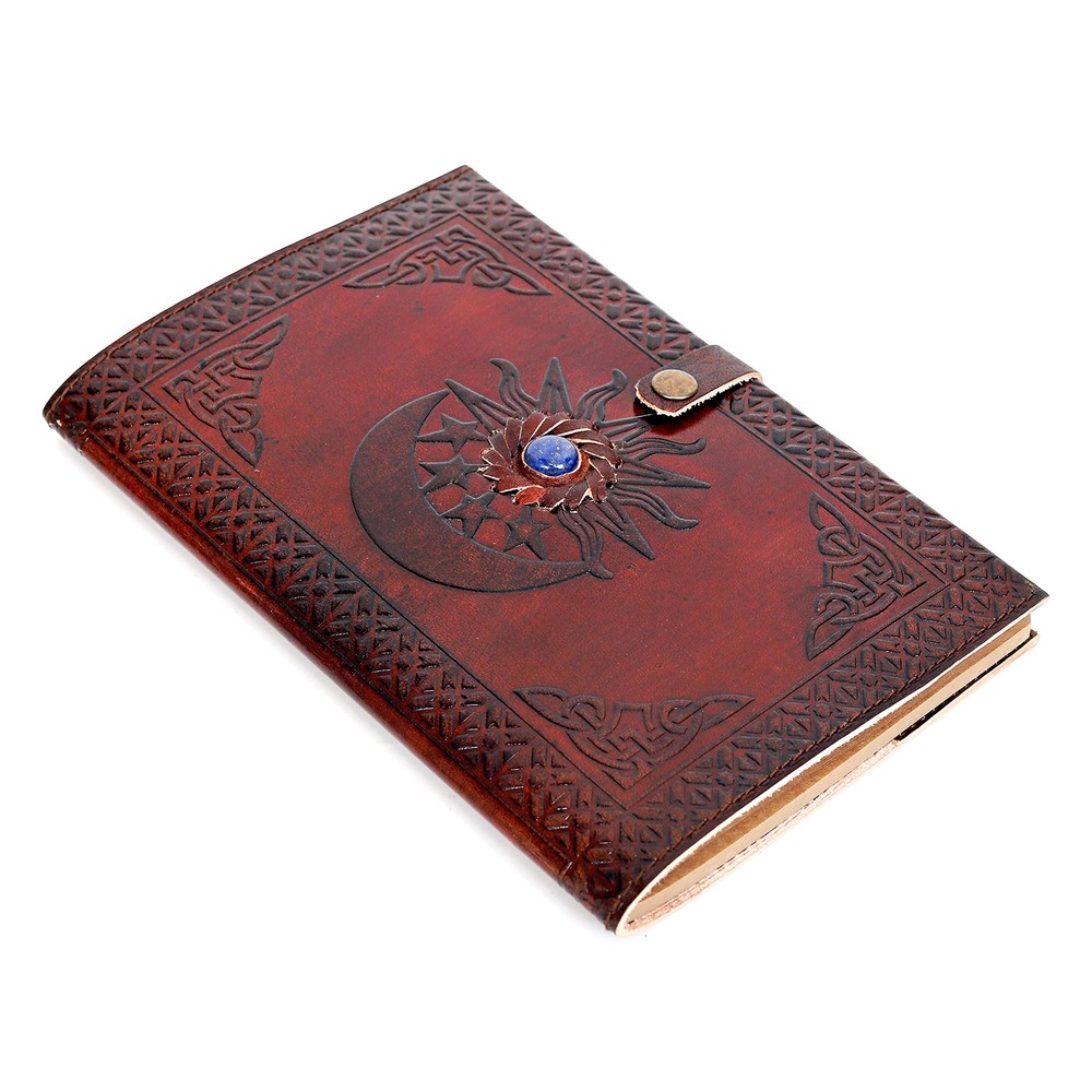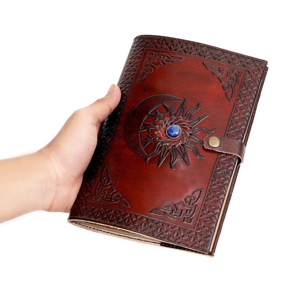 Made from 100% Genuine Leather Beautifully made soft and durable genuine leather Hand-stitched binding- means the pages stay firmly in place (Non-refillable) A lovely distressed vintage style leather diary Environment friendly and handmade leather journal Leather Journal with Unlined Pages - SUN & MOON Blue Stone Leather Bound Writing Journal for Women & Men (7x5 in) Unlined Journals for Women, Leather Bound Notebook Journal & Diary, Embossed Stone Journal for Writing Handcrafted from genuine top grain leather: Each journal is specially designed and handmade from premium top grain leather. The artful design and hand stitching to create a timeless space for your thoughts Unlined paper: 180 pages of thick, natural 115GSM kraft paper. Perfect for use with many pen types. Thick paper prevents bleed through. Pages are Unlined with 5.5mm spacing. Note: page count is 180 pages, 90 sheets Tell your story: We designed this classic leather journal as a time capsule for your thoughts. Capture your important memories, accomplishments (and failures), life-changing moments and evolving dreams as a keepsake to reflect upon in years to come A special keepsake: Give your loved ones something truly special that will last for years to come! Great for a birthday, anniversary, or graduation