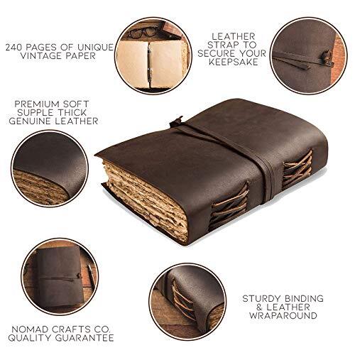 Return Policy Fast Delivery Trusted seller Leather Journal-Vintage Leatherbound Journal - Handmade Antique Deckle Edge Paper - Leather Sketchbook - Book of Shadows Journal - Thick Journal - Vintage Journal Product Description Unique Handmade Vintage Paper - Nomad Crafts Co. Vintage Journal is made with 240 pages of Antique Paper which looks like it was pulled from history. You will fall in love with the the antique handmade cotton paper which is very unique to our Nomads Vintage journal. Use Any Kind Of Pen - Sketch, Doodle, Write on your Leather Bound Journal with a Calligraphy Pen Fountain Pen, Brush Pen, Ball Pen, Acrylic Colours, Watercolor and many more. Premium Soft Supple Thick Genuine Leather - The Nomad Leather Journal is made from naturally tanned full grain leather which feels and smells Amazing. It's soft and very comfortable in the hands. Don't be fooled with competitors using cheap substitutes, this is the real deal. Sturdy Binding And Leather Wraparound - Sturdy hand stitched binding to make sure that no paper comes out loose from your vintage notebook . The leather wraparound keeps the papers of the journal safe and secure. Our 365 Day Replacement Promise - We are very confident that you will fall in love with your Vintage Journal that we offer a 1 year .If you are not happy with your leather journal for any reason we will offer a FULL REFUND or a FREE REPLACEMENT. No Questions asked! Shipping Returns Payment Shipping Shipping is FREE to all addresses other than APO/PO boxes in the lower 48 states. All our stock ships from US-based warehouses. Shipped via USPS or UPS (depending on location and package weight) Unless stated otherwise, all orders will ship within 24-72 hours of your payment being processed. Check our feedback to see the great reviews of FAST shipping we offer. Returns Seller does not accept returns Payment We currently accept payment via eBay managed payments only. Once payment is cleared, we will dispatch your shipment within 1-3 business days. Please refer to the "Shipping" tab for more information regarding shipping speed to your destination.