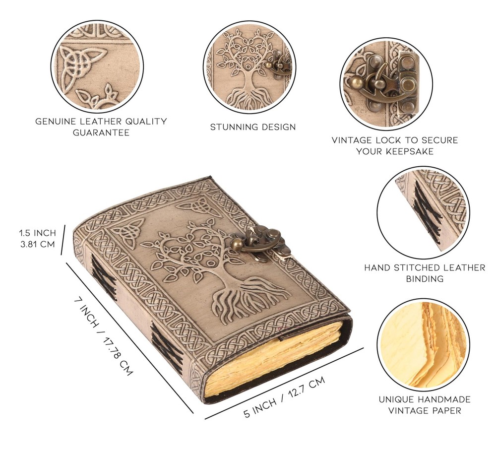 Leather Journal - vintage leather journal - leather notebook - Handmade Antique Deckle Edge Paper - Book of Shadows - Leather Sketchbook - Leather Bound Journal Men Women - 5x7 Inche Color full is the perfect journal to capture your important memories. leather notebooks and journals Its handmade design is stylish - a perfect journal for men or women. The rustic finish can accompany you in all your travels or as a daily companion to capture your thoughts. The paper is high quality, natural 120 GSM vintage deckle paper that prevents marker bleed, pen bleed. The hand stitched design will last for years to come. This leather journal men and women is a perfect gift for any occasion. We value our customers and are committed to ensuring a wonderful experience. Handcrafted journals contain acid less, handmade, archival Quality, linen - Vintage paper by a family owned company that has been in the handmade paper making business for almost 150 years. The book is approximately 7 inches Height, 5 inches length , and 1.2 inches thick, and the pages are unlined. This brand new journal makes an ideal present for that special someone or simply to keep for yourself. Leather Journals Handmade deckle edge Paper tree Of Life leather journal writing notebook antique embossed bound daily notepad unlined paper cover Writing journal for women 7x5 inch GENUINE LEATHER CRAFTSMANSHIP - Crafted with genuine crazy horse leather texture, this leather journal offers a soft touch exterior with natural, distressed look that’s truly exclusive. UNIQUE GIFTS - Stunning gifts for men on Father’s Day, Graduation or the perfect gift for women on Mother’s Day, Valentine’s Day, Birthday’s or Anniversary. A True Art Treasure, this blank unlined notebook will become a Family Heirloom! Organizer contains recycled deckle edge blank pages 200 which are perfect for mini notes. Handcraft leather diary is an awesome find for book lover or literature present MANY USES - Can be used as a book of shadows , blank spell , book spell , books with real spells , witchcraft supplies , wiccan supplies and tools , spell books , spell book , wiccan altar supplies , witchcraft decor , book of shadows journal book of spells witch journal witch spell book notepad, journal, writing notebook, sketch book. 1.5 inch thickness, easy for handwriting, drawing or sketching and compact for carrying in your bag. Ideal for alternative Artist .
