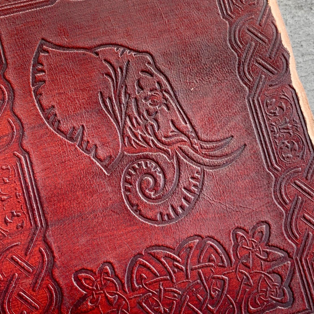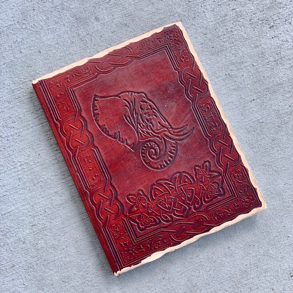 These journals are hand made from leather and hand embossed. The paper is naturally treated cotton paper which are best suited for writing, noting, jotting, sketching, doodling etc. Product Dimensions: Length - 7 in * Width - 5 in - 200 pages approximately Leather used: Bull hide or goat leather Paper Used: SAVE TREES with us - we use eco friendly recycled cotton paper (recycled 100% cotton rag) Since these journals are fully handmade, there could be slight variations in the embossing or sewing or color in every batch *****A little about these journals:******** We were lucky to once find a collection of vintage journals from the 1990's which was handmade and we immediately fell in love with them. Hence we have started to make our own line of journals with our own designs and the latest trendy designs. Each journals is designed and prototyped by me and then the rest of the process is handled by a production partner with help of necessary hand tools Each Journals is fully hand made! We create embossing plates for the designs and those designs are hand embossed on the leather and then they are hand sewn into books. The paper used in these journals are also handmade with cotton. ( Save trees with us as the papers are 100% recycled and handmade) My clients usage: Gifts for him , valentines gift, anniversary or wedding or housewarming gifts, home decor, modern home decor and many more these are ready to ship items and will ship within 1-2 business days. If you are an international customer, then I suggest to upgrade to Priority mail so that you can get the tracking number to track the shipment. PLEASE NOTE: If you wish to purchase more than one item at the same time, please send me a message to request if I could do a combined shipping cost.
