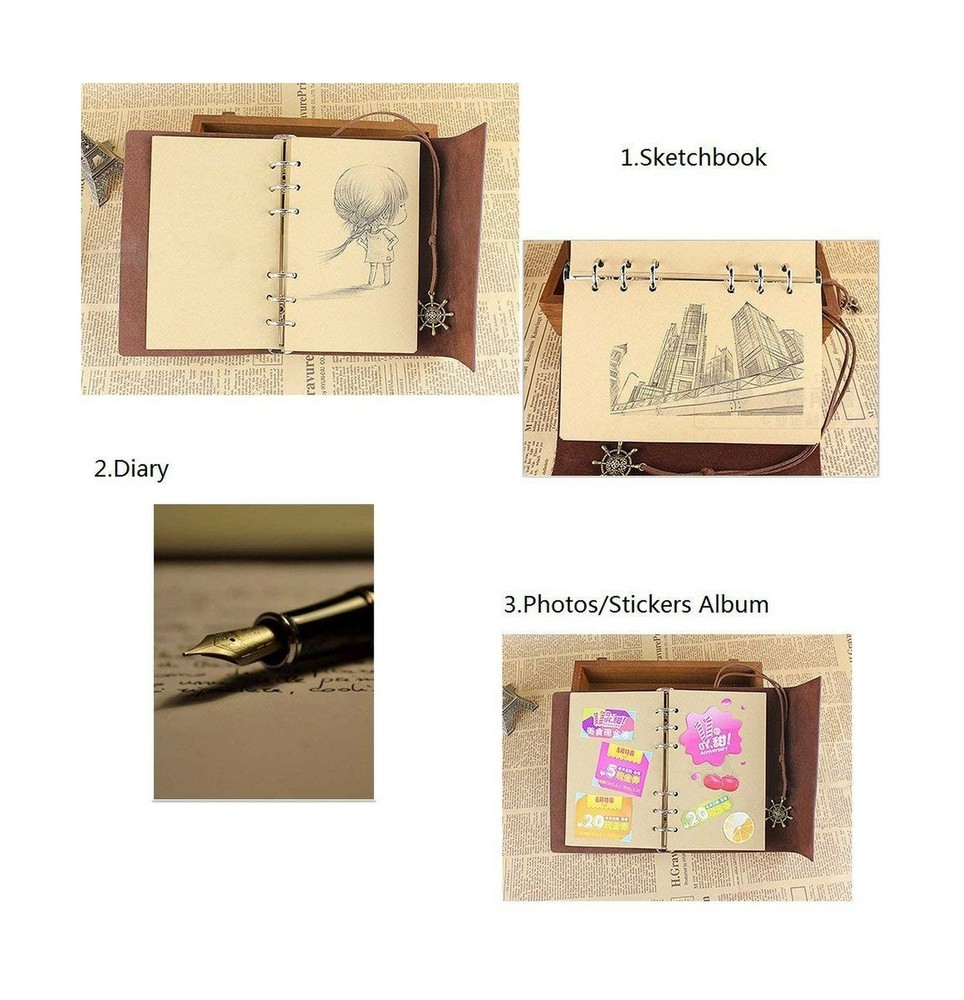 Product Details Color: Sky Blue Brand: MALEDEN MPN: P-TND-HY48002-TIANLAN UPC: 799695516032 EAN: 0799695516032 Manufacturer: MALEDEN Brand: MALEDEN Item Weight: 7.2 ounces Product Dimensions: 7.2 x 4.96 x 1.18 inches Item model number: P-TND-HY48002-TIANLAN Is Discontinued By Manufacturer: No Color: Sky Blue Material Type: PU leather Number of Items: 1 Sheet Size: A6 Inches Brightness Rating: 1 Lumen Paper Finish: Ultra Smooth Manufacturer Part Number: P-TND-HY48002-TIANLAN Date First Available: June 8, 2016 Blank Paper: No lined feature, you can draw mind maps, sketch ideas or write notes freely on the page.Perfectly work as writing journal, drawing pad, scetch book, travelers notebook, diary planner, coupon organizer, photo album and so on. Refillable Notebook: Take out pages that aren't important and swap in for blanks to keep filling it out.Take paper out or in easily so that you can record any instant memory no mater where and when you are. Leather Journal: Made of high quality PU leather,soft in hands,durable for travel or outdoor adventure.Inserts are craft paper which can keep your writing and drawing the same as beginning to help you reread easily in future.Both cover and insert work to give you a permanent memory. Convenient Journey Diary:Perfect size for handbag and schoolbag(5x7inch);Built-in small binder help you add refills planner,calender pages easily;Available for any pen,gel pen,pencil,ballpoint pen and so on.More surprise you will find when getting Maleden journal. MALEDEN Brand:Come with MALEDEN exquisite package.A perfect Birthday gift,Halloween gift,Christmas present for yourself,families and friends.