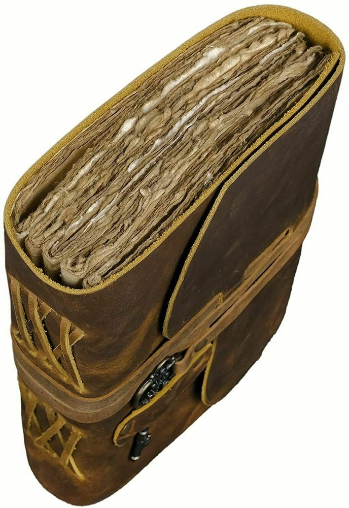 Personalization available ( up to 3 initials ) If you choose the customization option, please include up to 3 letters in your buyer's notes or contact us The Handmade Vintage Deckle Edge Paper looks and feels like a thousand years old is treat to write on. The paper is made from environmentally friendly cotton and jute canvas. The paper is acid-free and pH neutral therefore is a timeless piece of art. No more worries about ink messing up the pages either. The thick pages are ideal for pen, pencil, crayons and even charcoal! We can guarantee no bleed through! The vintage Leather Bound Journal is a perfect sketchbook, book of shadows, grimoire, wicca, calligraphy journal, scrapbook, art journal, leather Sketchbook Drawing and many more. The leather bound journal made from antique paper is a treasure that you can pass down the generations. The leather is soft and supple to the touch and smells amazing. The leather will age over time and will get better and better. Its the perfect travel companion to cherish memories or even to jot down precious ideas and there is not better way preserve your memories for your future generations. Get Yourself The Most Valuable Travel Companion Today – Never Have To Travel Alone Again. Handcrafted by skilled artisans with a lot of love and care. Here’s Why This Vintage Leather Bound Writing Journal Is What You Are Looking For: 1. Soft Luxurious Durable and Supple Rustic Leather Bound Cover which ages with time. 2. 120 Pages of Thick Antique Vintage Cotton Paper which looks like thousand years old. 3. Sturdy Leather Binding Technique will make sure that the pages never fall off. 4. Medium size 7 by 5 inches rustic scrapbook/organizer easily portable. 5. Being hand-made, no two journals are quite the same.