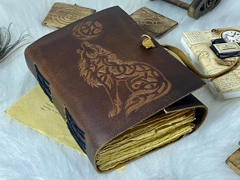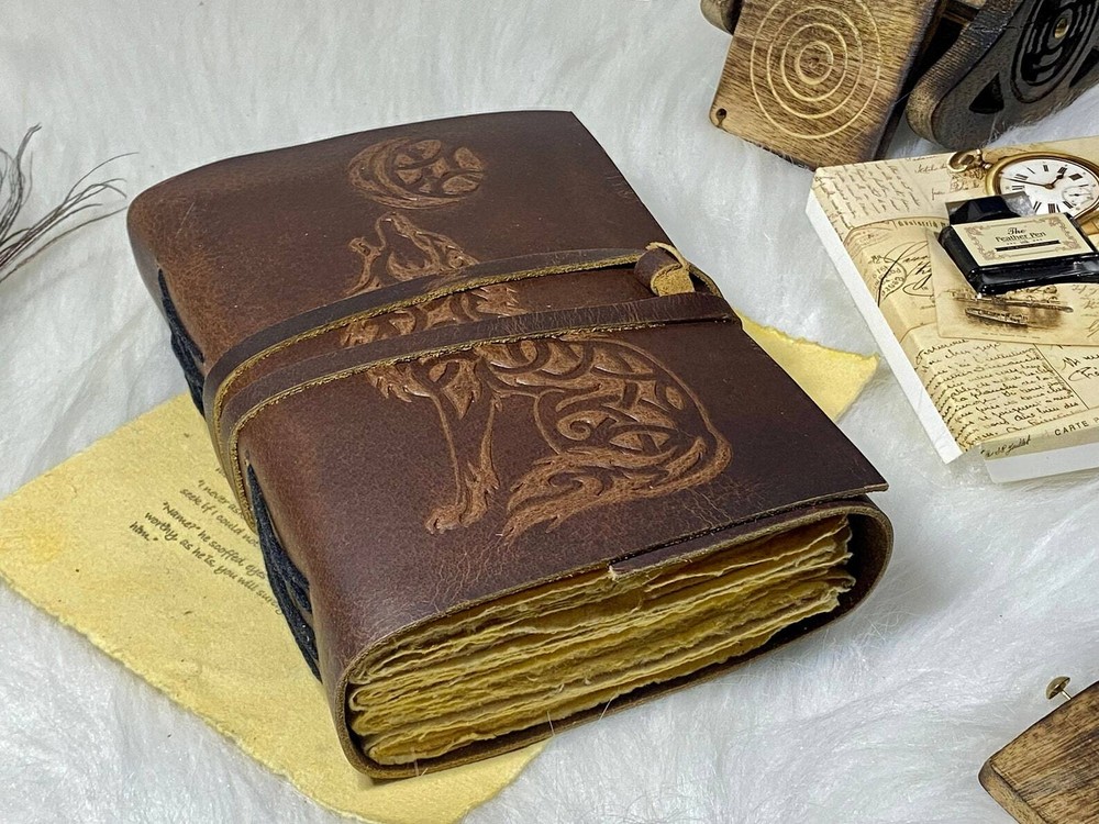 Fox print Vintage leather Journal The Lovers Book of Shadows Handmade Leather Journal Grimoire Journal with Deckle Edge Paper Gifts • C-Lock • genuine leather • vintage deckle edge old paper • Size - 7×5 inches • P ersonalization ● Vintage Journal is made of unique vintage paper which looks like it was pulled from history. You will love the old looking handmade which is unique to our vintage journals. ● The vintage lock will keep all your valuable writing locked inside. Study hand stitched binding to make sure that no paper comes out loose from your vintage notebook. ● It is a truly unique and wonderful gift for a friend, the men, women, and wiccans in your life! or to treat yourself to as a special keepsake ● our journals are influenced by symbolism that is derived from the Wicca/Pagan community, creating a personalized space where your inner creative genius can flourish. Leather notebook, leather journal, leather grimoire, book of shadows, gift for him, gift for her, gift for boyfriend, gift for girlfriend, gift for mother, wiccan, pagan, recipe notebook, travel notebook, wedding guest book.
