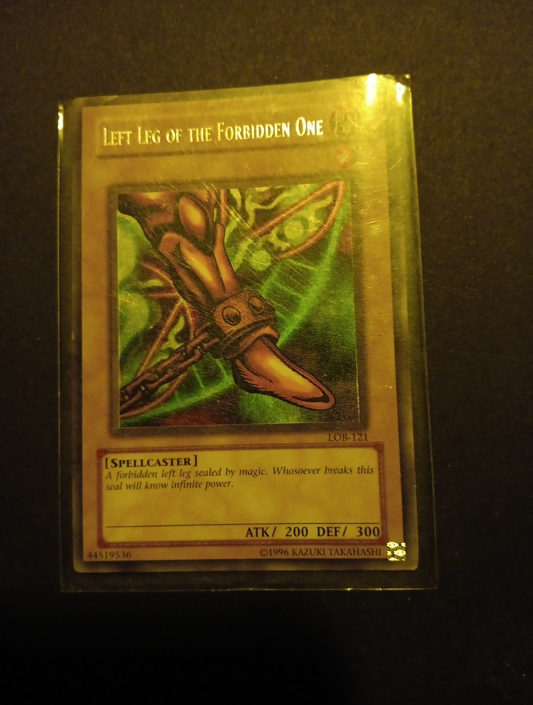 Elevate your Yu-Gi-Oh! TCG collection with the iconic "Left Leg of the Forbidden One" card, from the legendary "The Legend of Blue Eyes White Dragon" set. This ultra rare card, numbered LOB-121, features the enigmatic Spellcaster creature type and boasts an attack power of 200, with a defense strength of 300, ensuring it can withstand formidable opponents. Crafted by Konami, the card reflects its Unlimited Edition prestige and comes in English language. Its dark attribute adds a shadowy allure to its already captivating design. Don't miss the chance to own a piece of Yu-Gi-Oh! history with this formidable Left Leg of the Forbidden One, ready to unleash its unlimited potential in your duels.