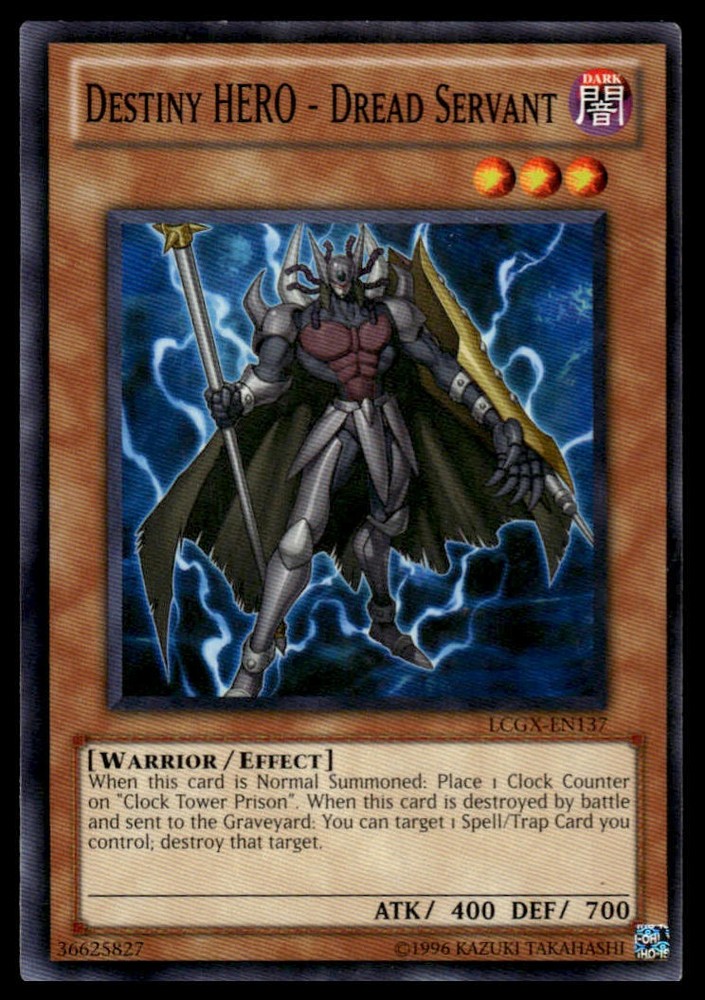 This is a nice example of a Legendary Collection 2 #LCGX-EN137 Destiny HERO - Dread Servant Other important information about this card: In Destiny HERO - Dread Servant played for the . Please check out our other listings for more great cards.